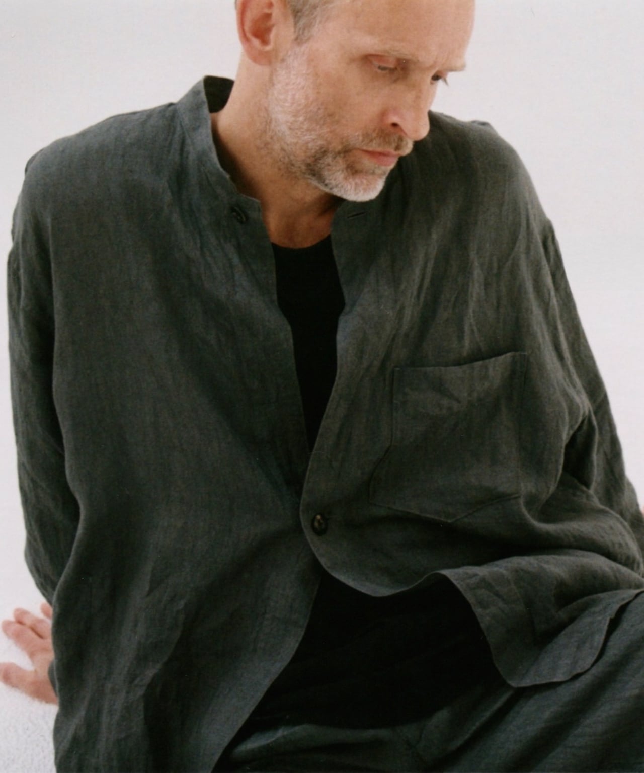 素材にはリネンとラミーをブレンドした、程よい光沢感のある生地を使用。