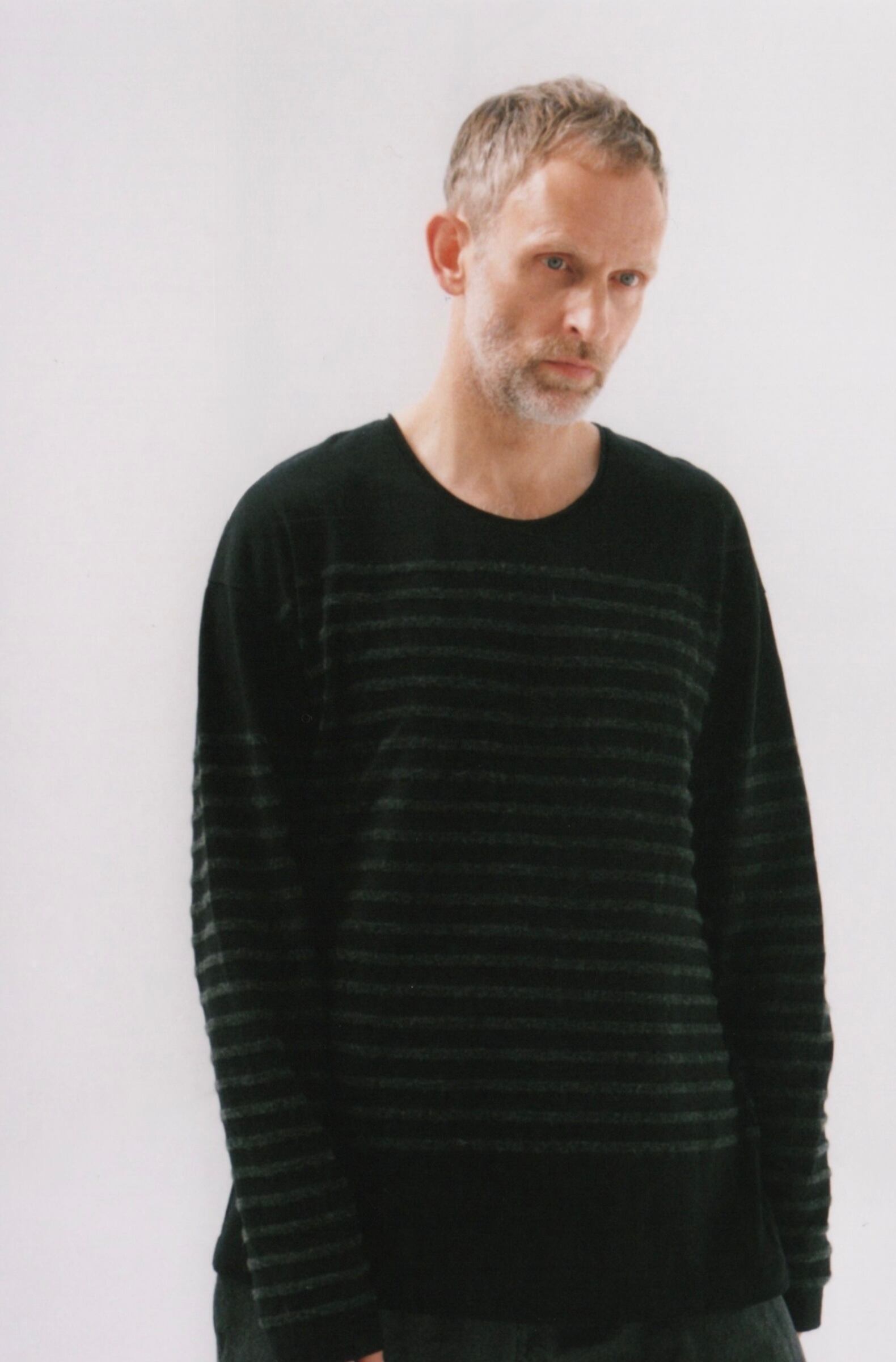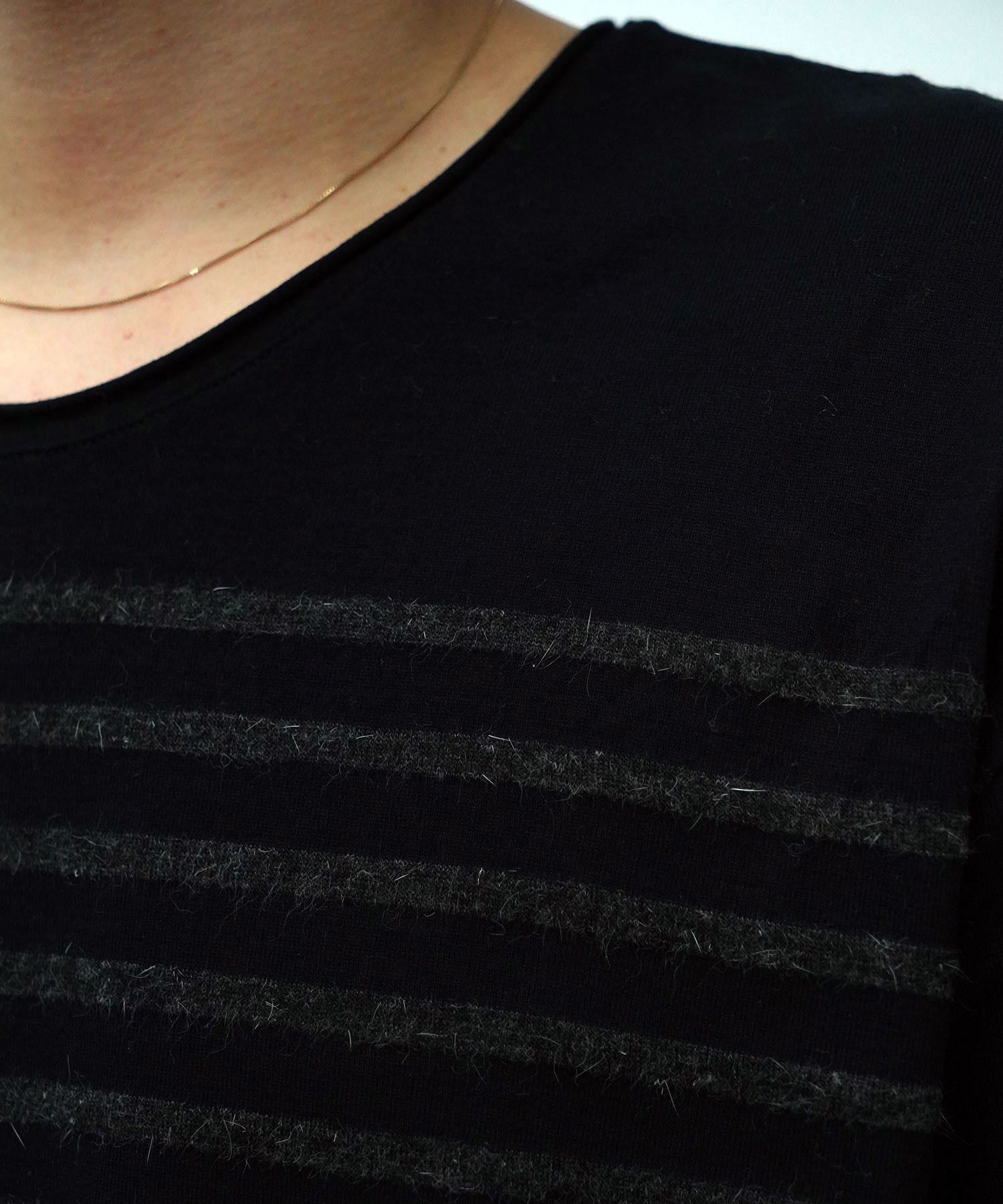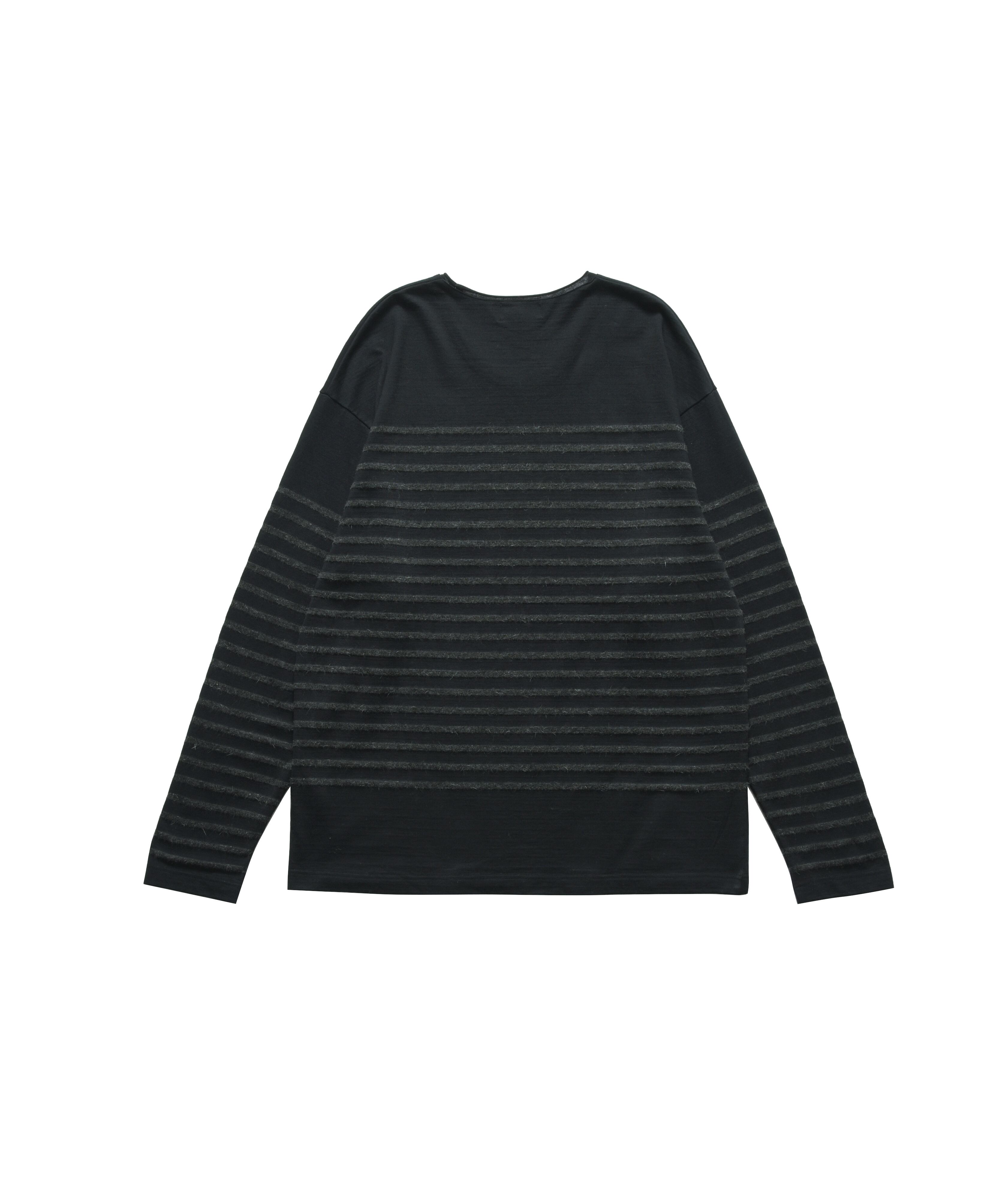 ボーダーにはウールの長い毛足を利用。ウールとコットンの質感の違いでボーダー柄を表現する、漆黒のバスクボーダーです。