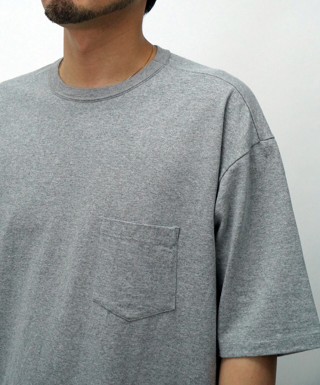 14番単空紡糸で編み立てた丸胴の度詰め天竺を使用し、ポケットTに仕上げました。