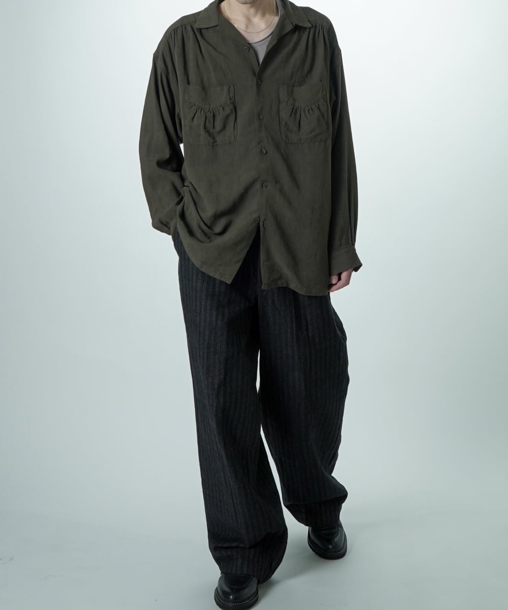 レーヨンとリネンの、落ち感もありつつ、独特な粗っぽさもある素材を使用し、