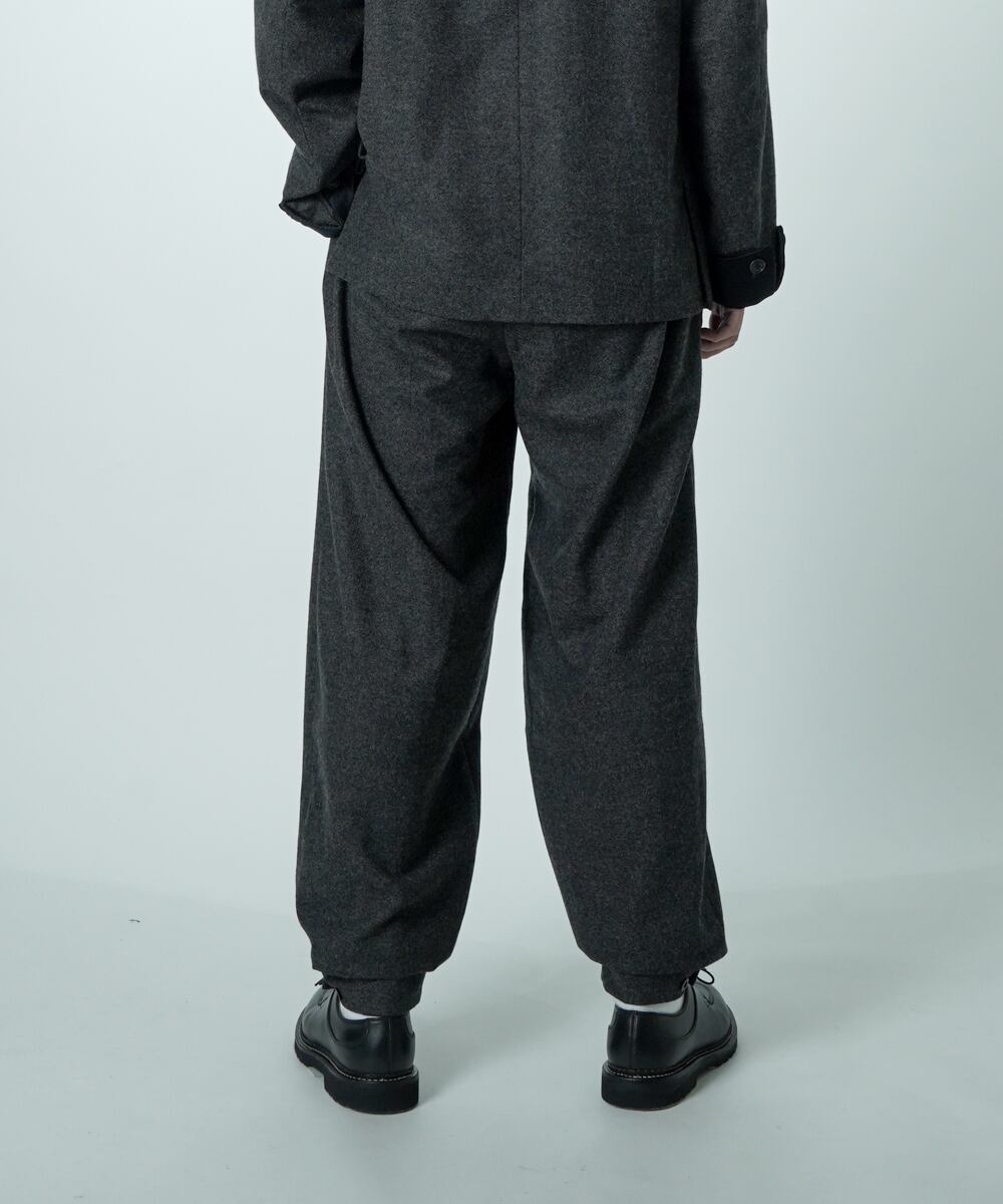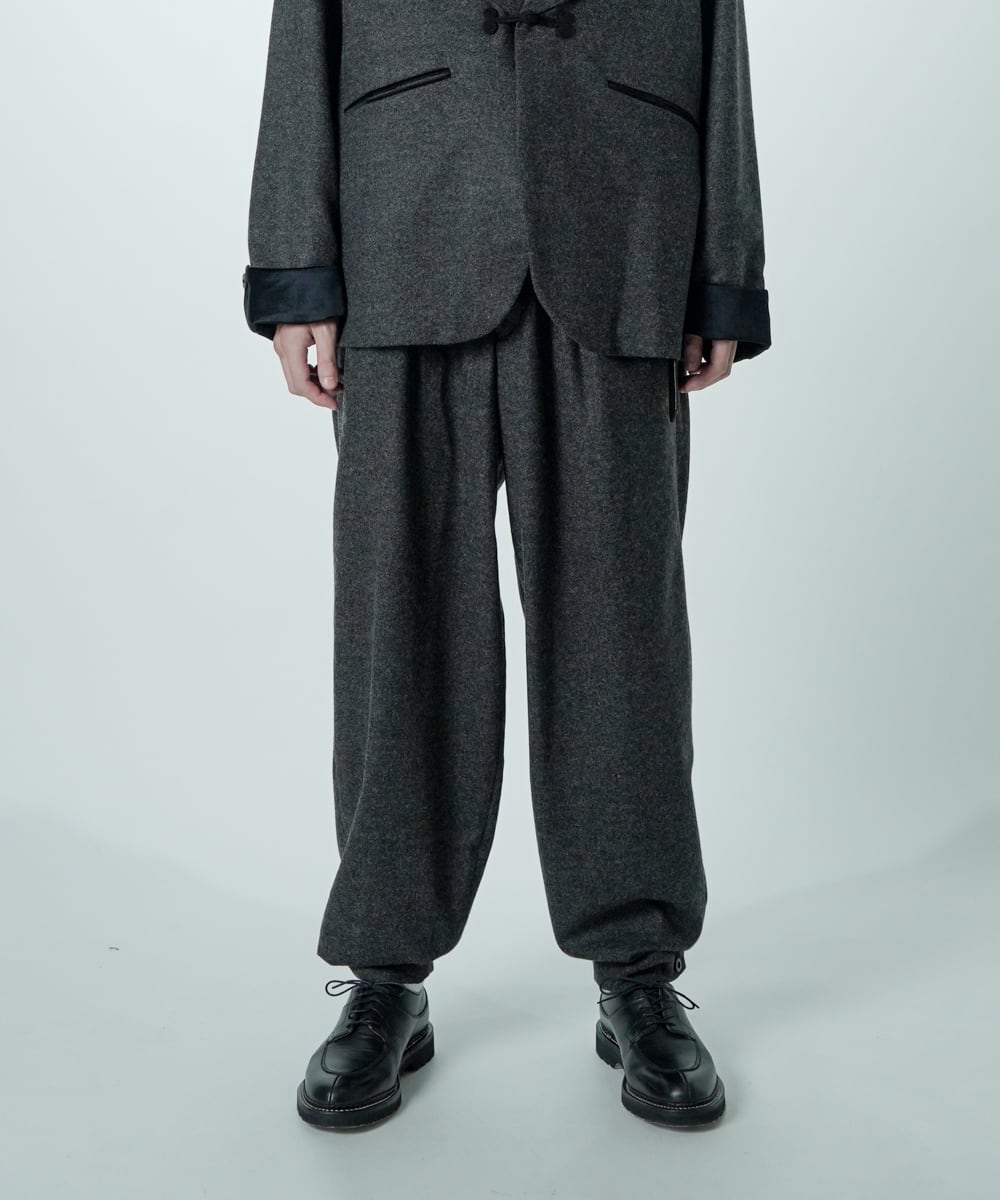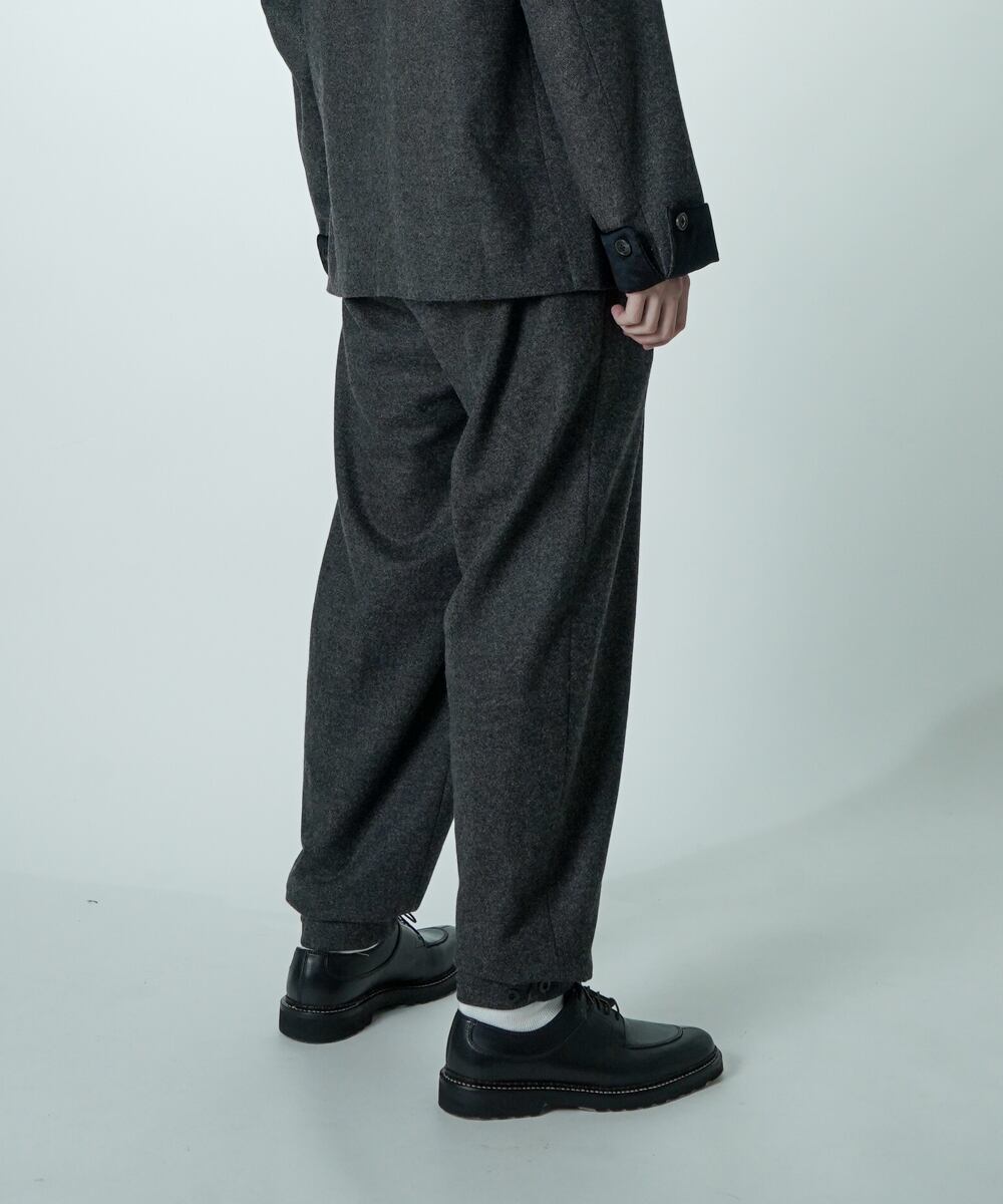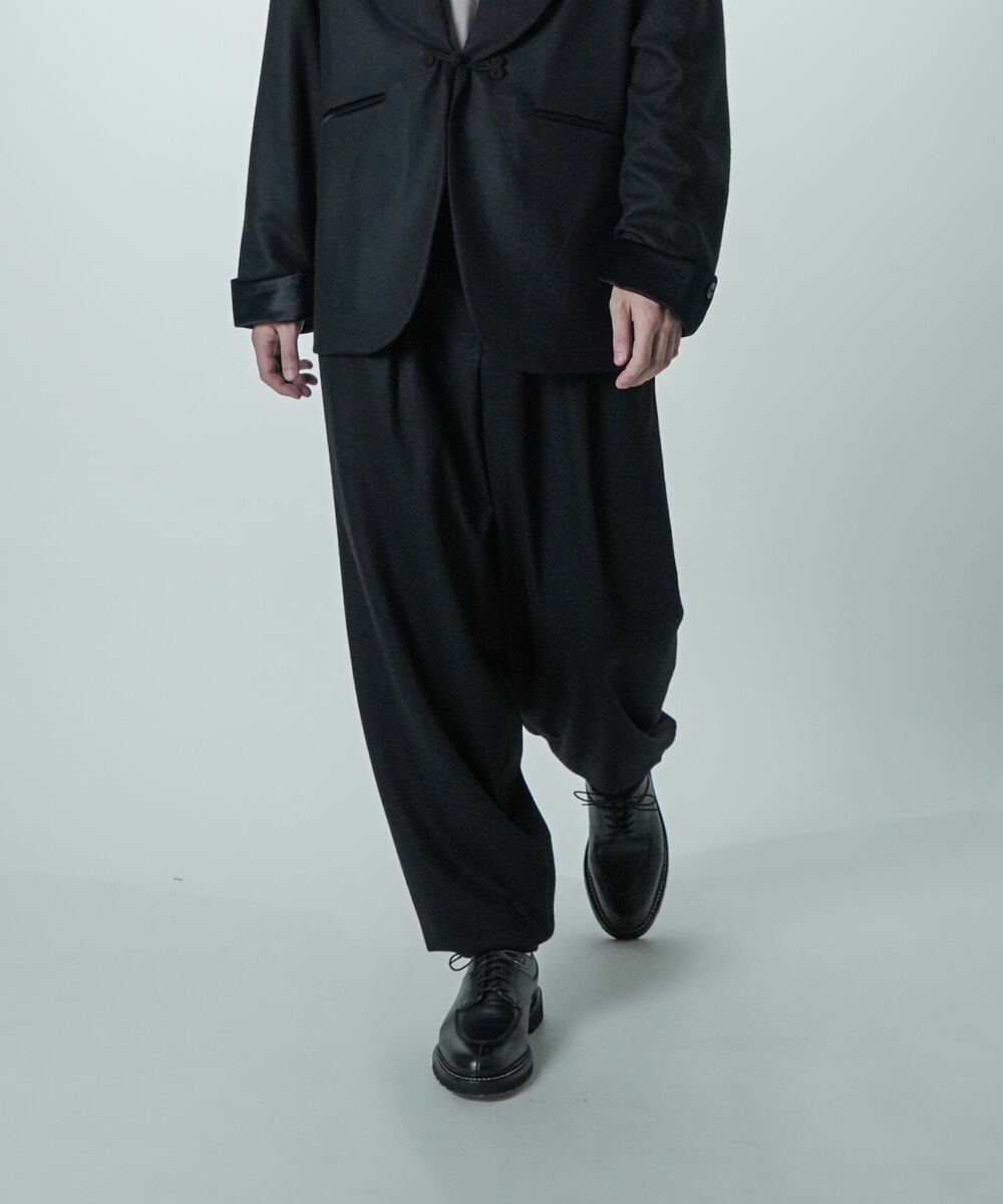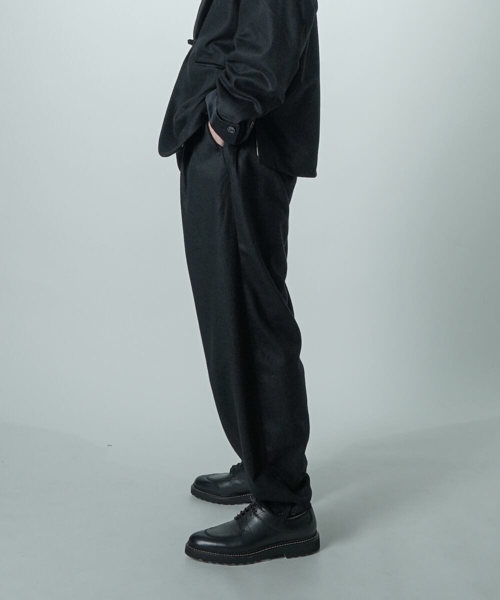 単品使いでも、同素材のV16509 SMOKING とセットアップでも楽しめる万能パンツです。