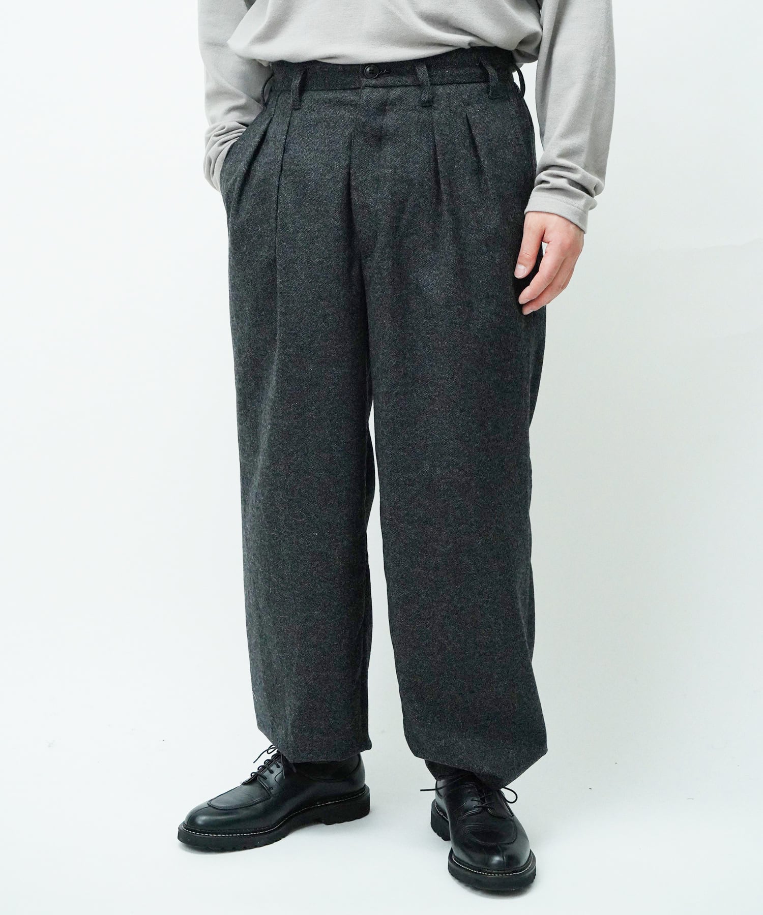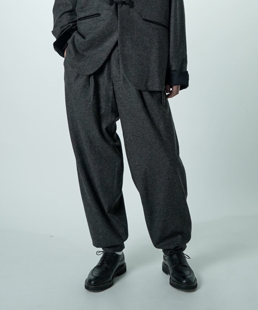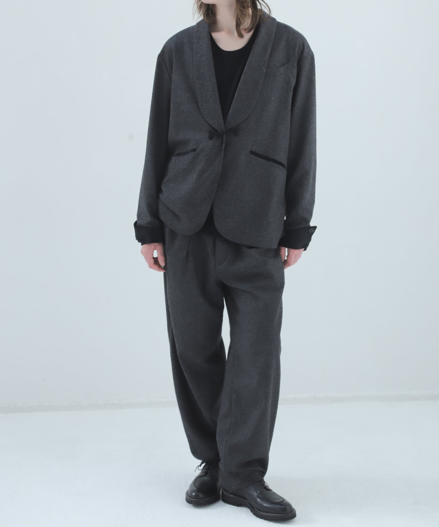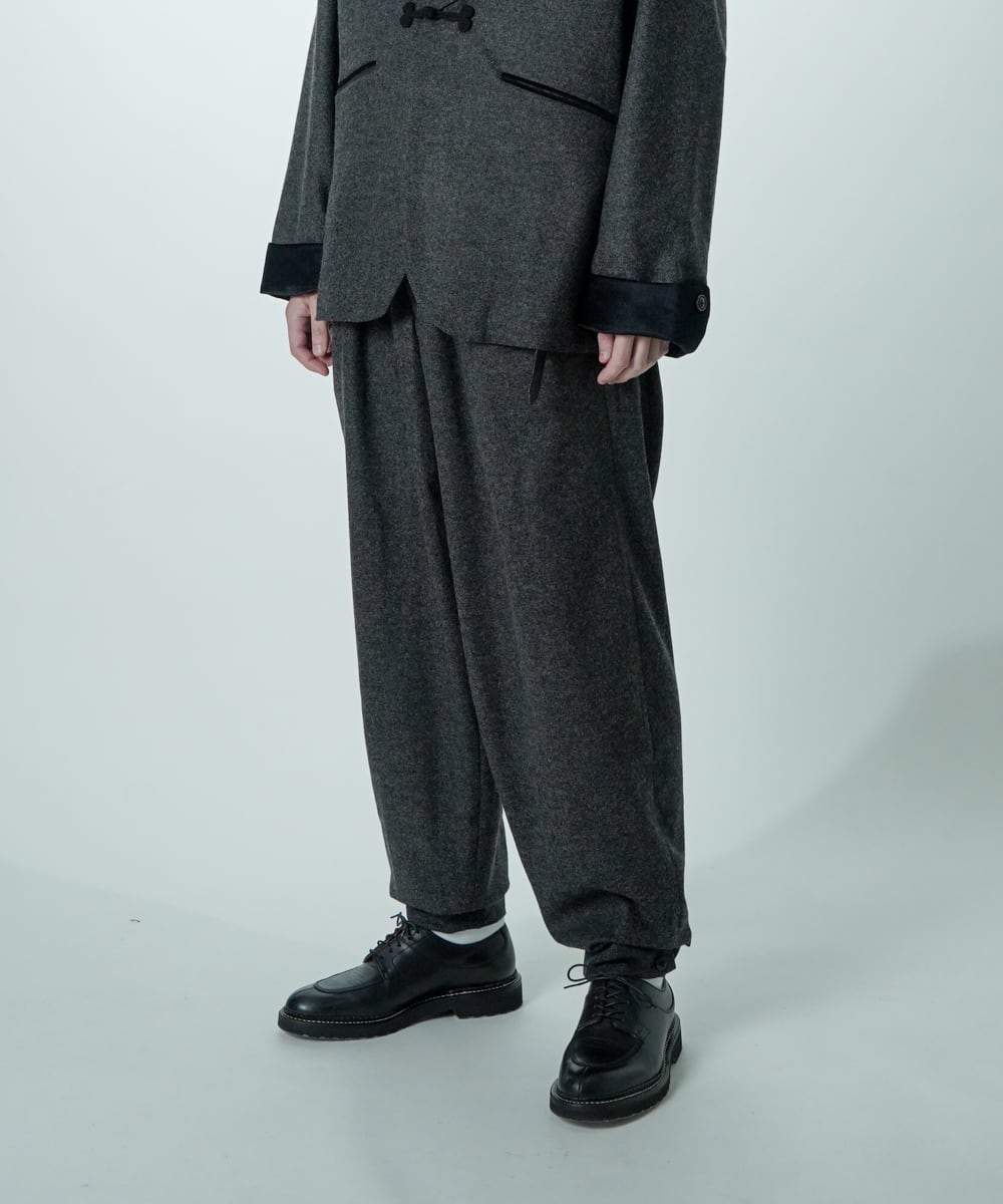 単品使いでも、同素材のV16509 SMOKING とセットアップでも楽しめる万能パンツです。
