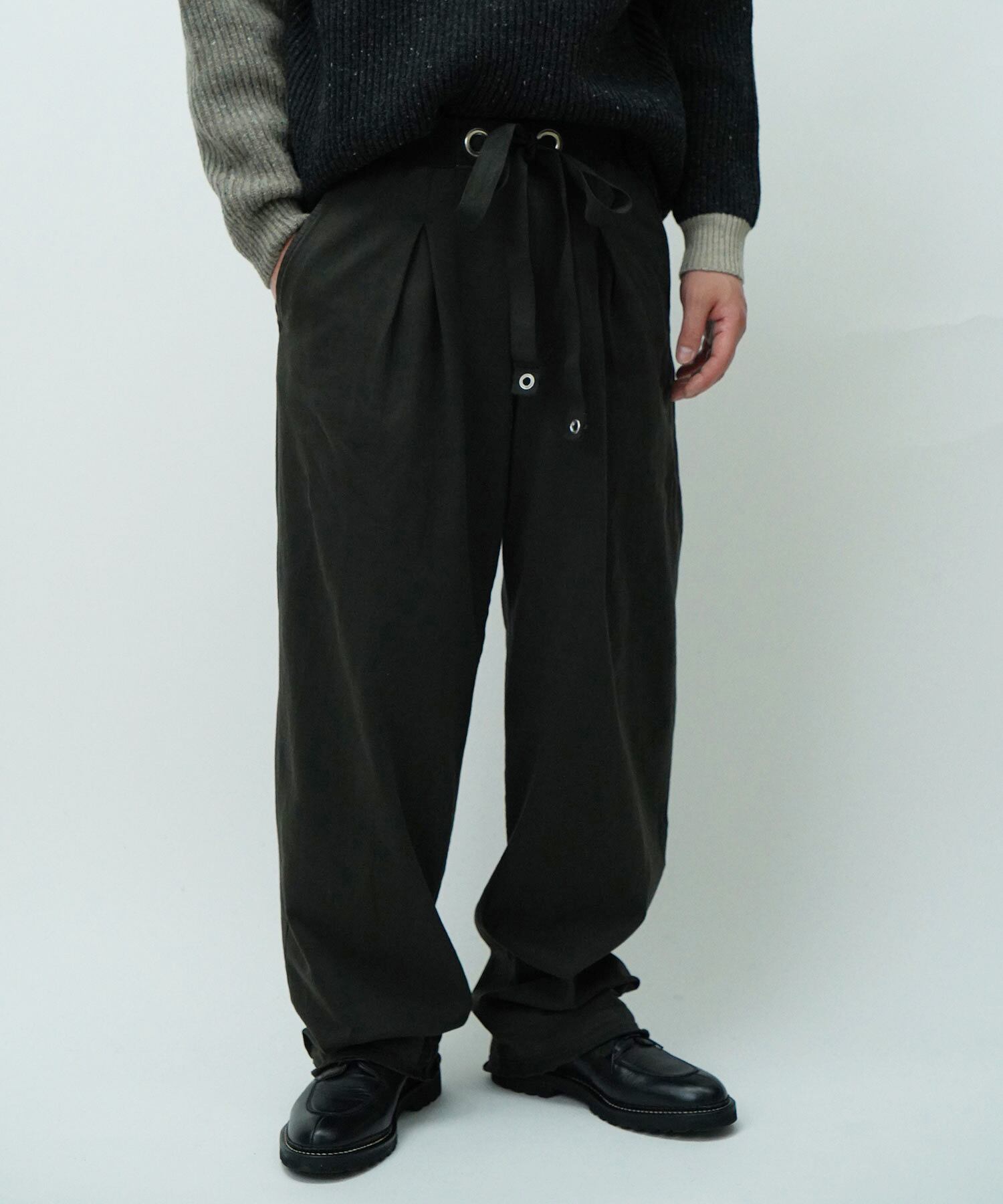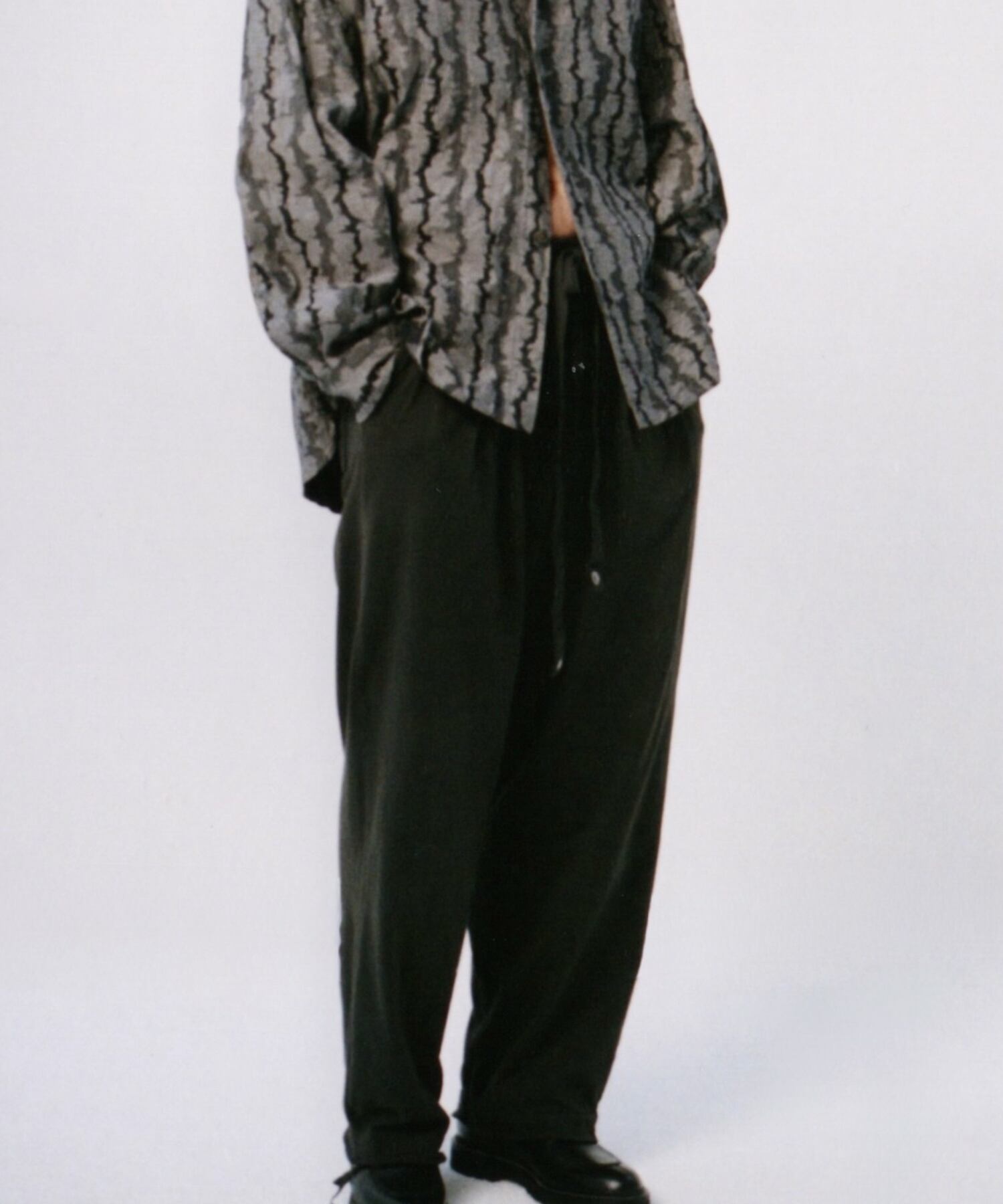 ワイドなシルエットで裾は断ち切り。裾を絞っての着用も可能です。