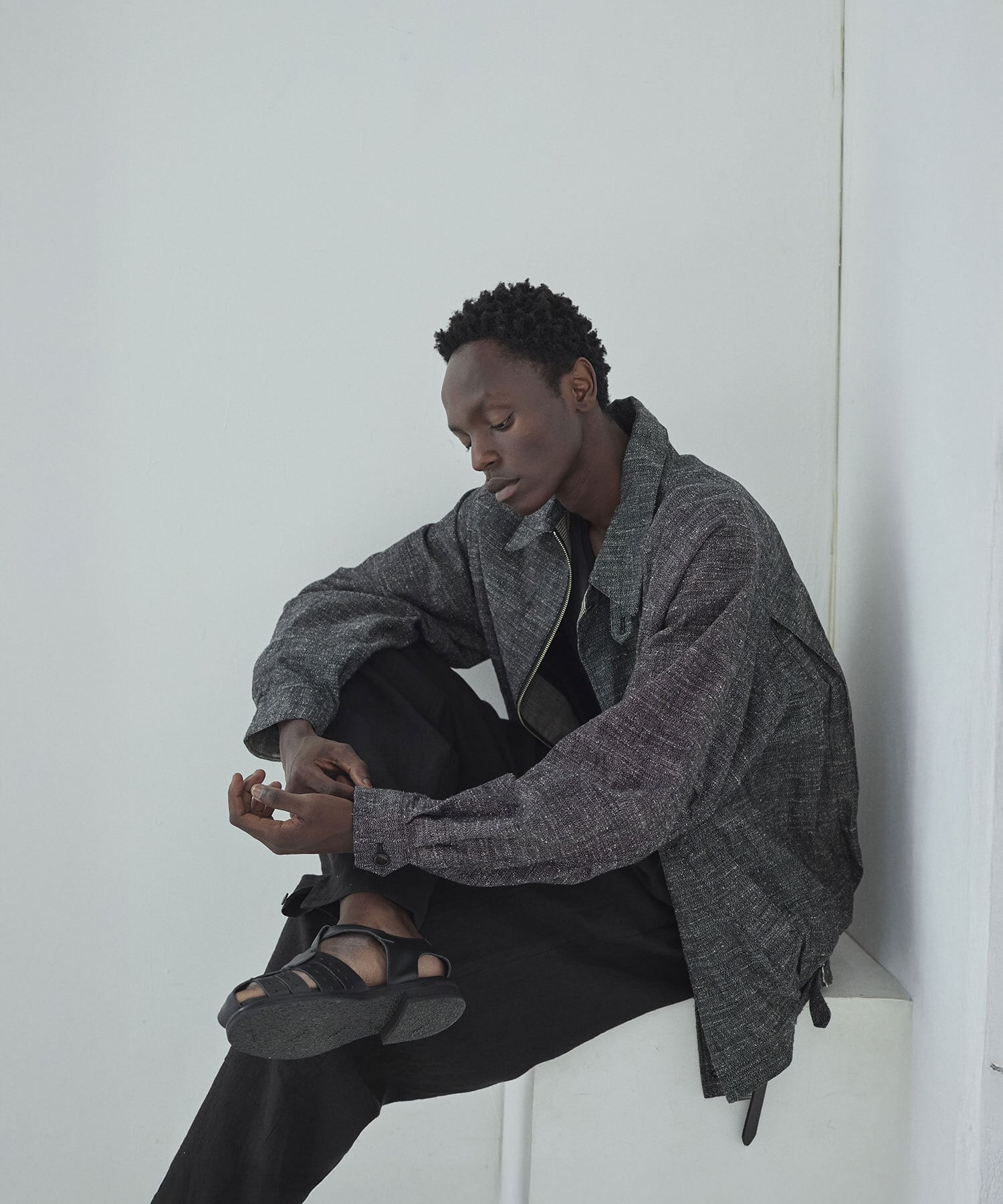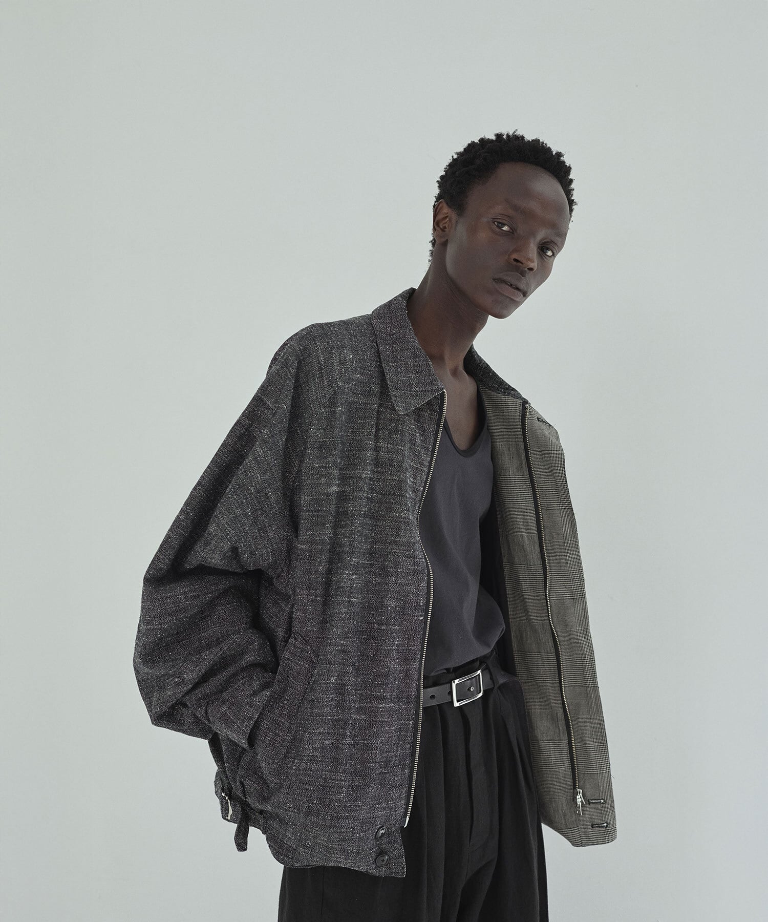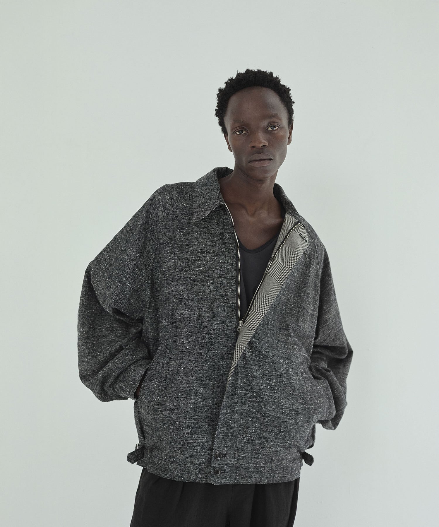 あえてハリントンジャケットらしからぬ素材選択により、クラシックでありながら新鮮な印象を与えています。