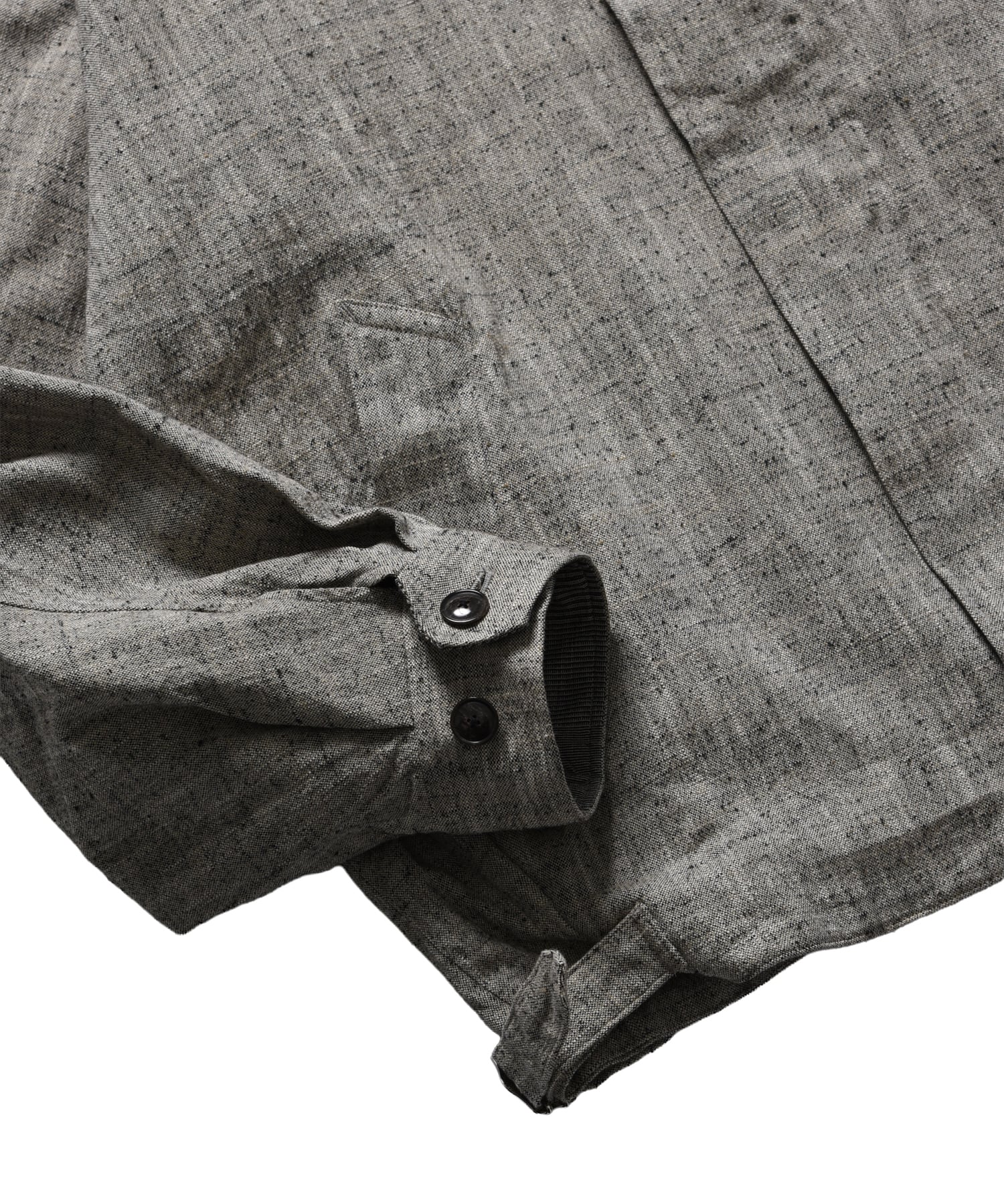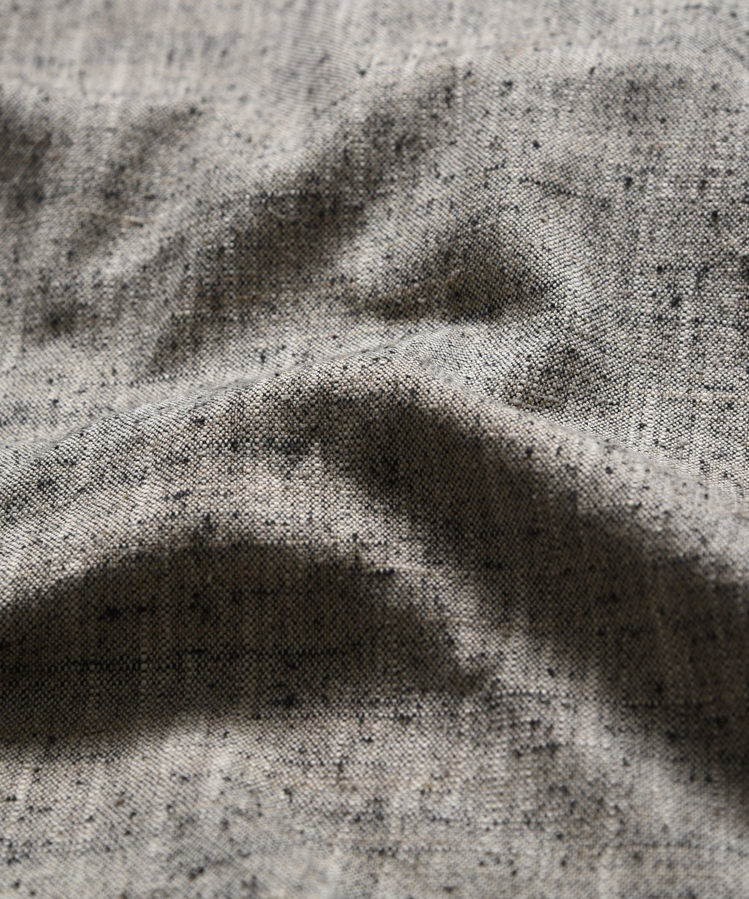 ネップを効かせたコットン、レーヨン、シルクの混紡素材を採用し、絶妙な光沢感としなやかさを両立させています。
