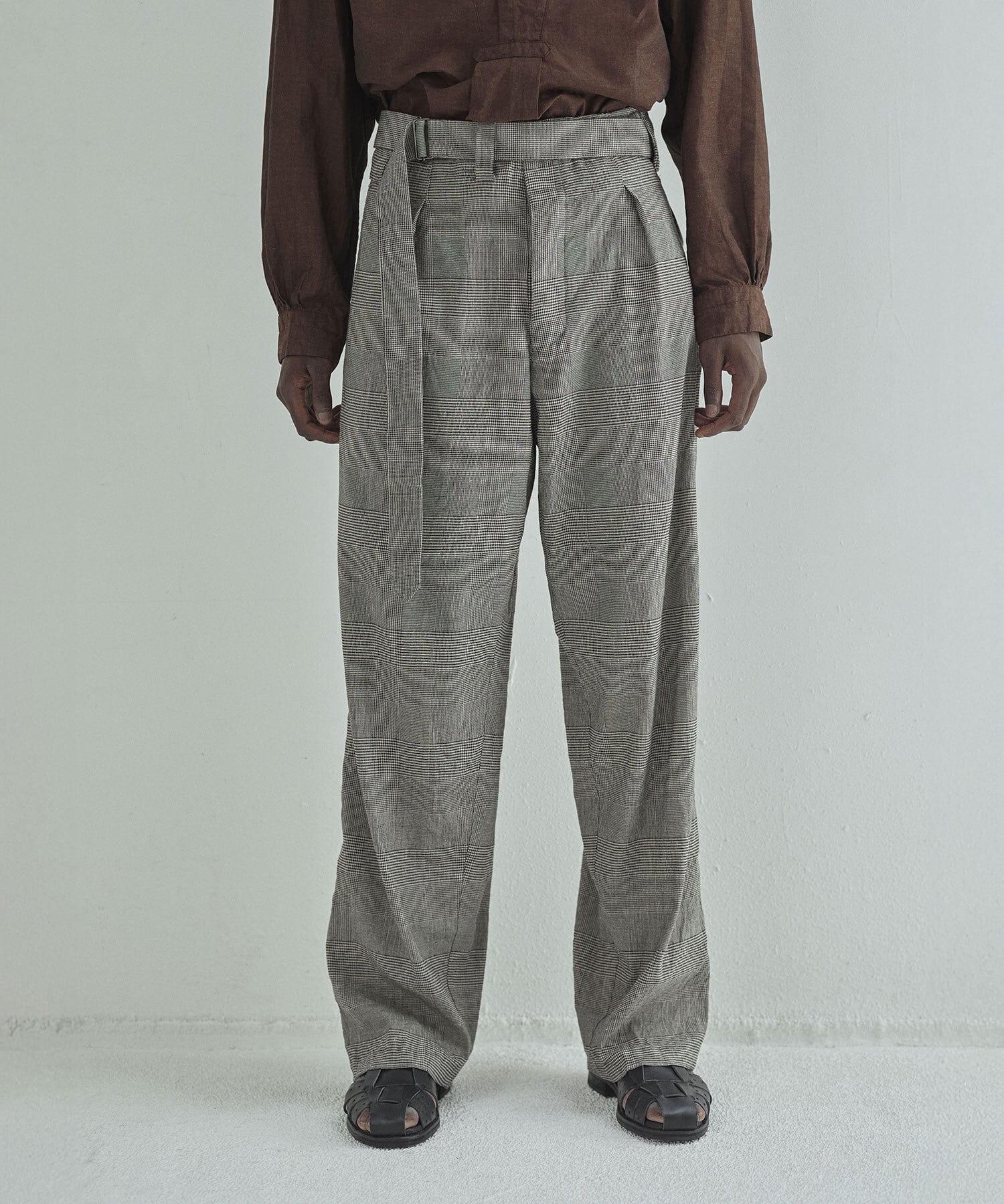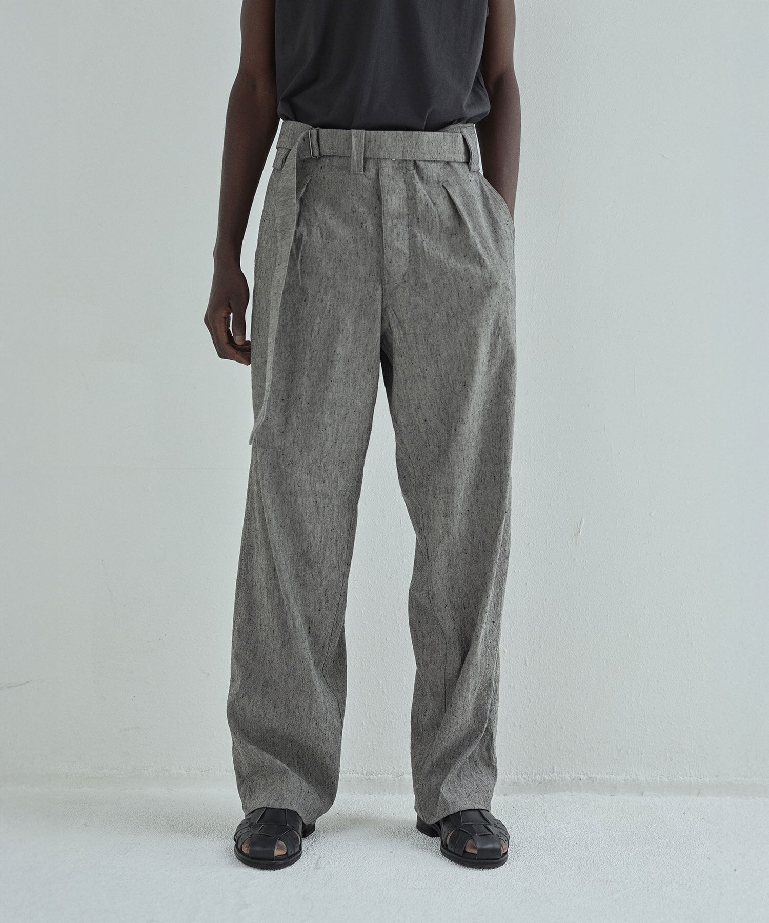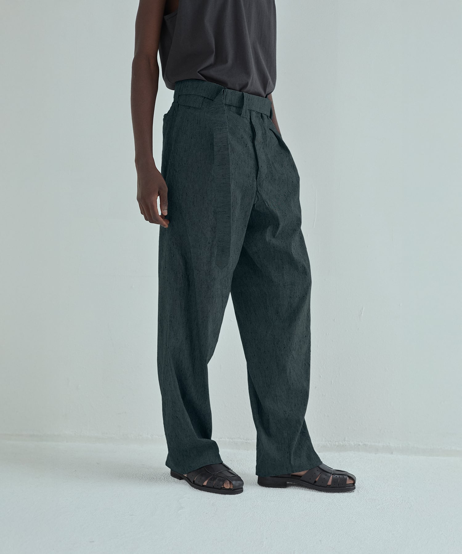 ワイドなワタリから裾まで真っすぐ気味に落ちるシルエットは、現代的なゆとりを演出しつつ品のある仕上がりを実現しています。