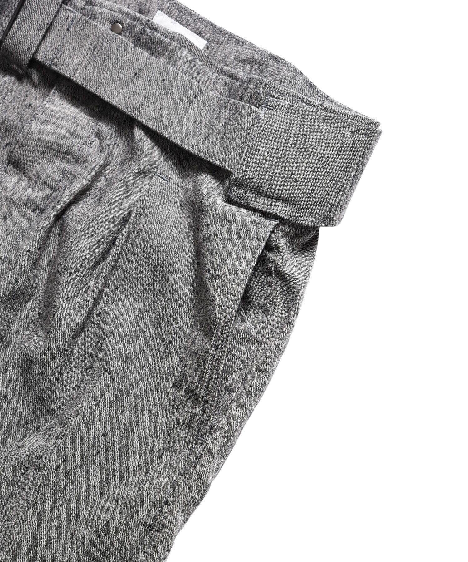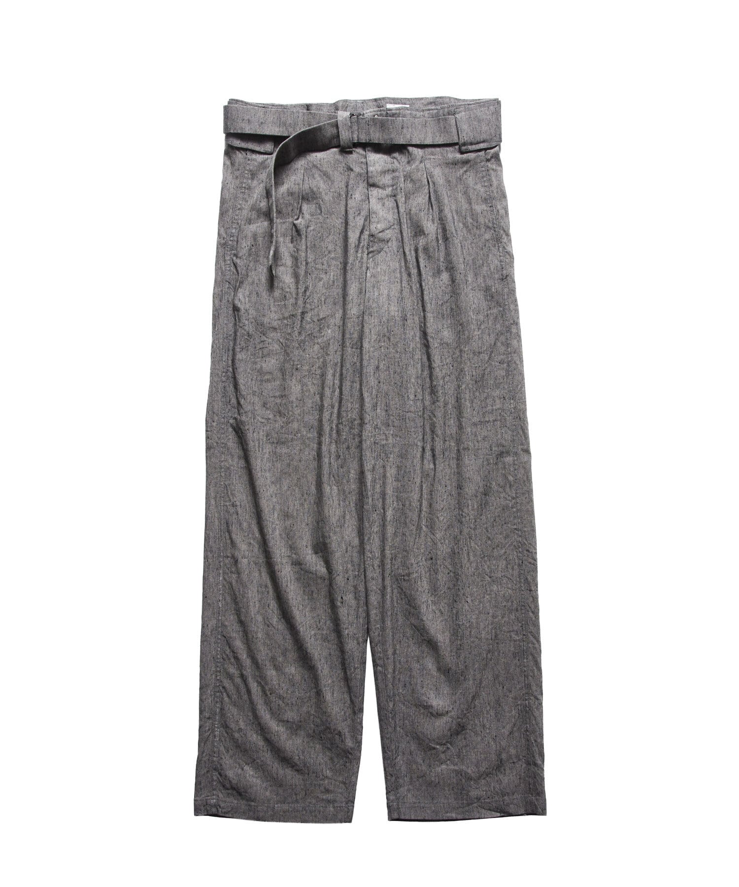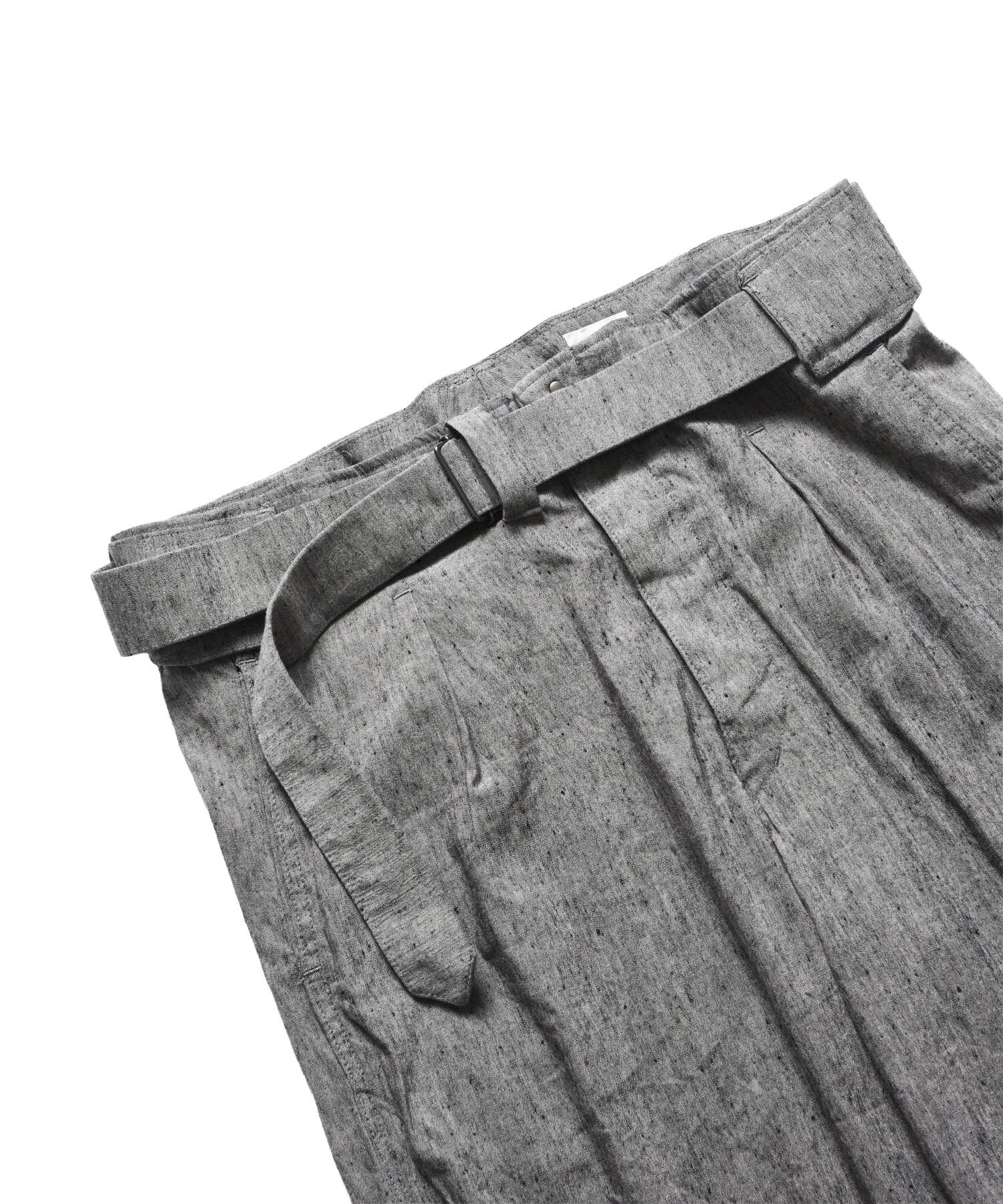 ワイドなワタリから裾まで真っすぐ気味に落ちるシルエットは、現代的なゆとりを演出しつつ品のある仕上がりを実現しています。
