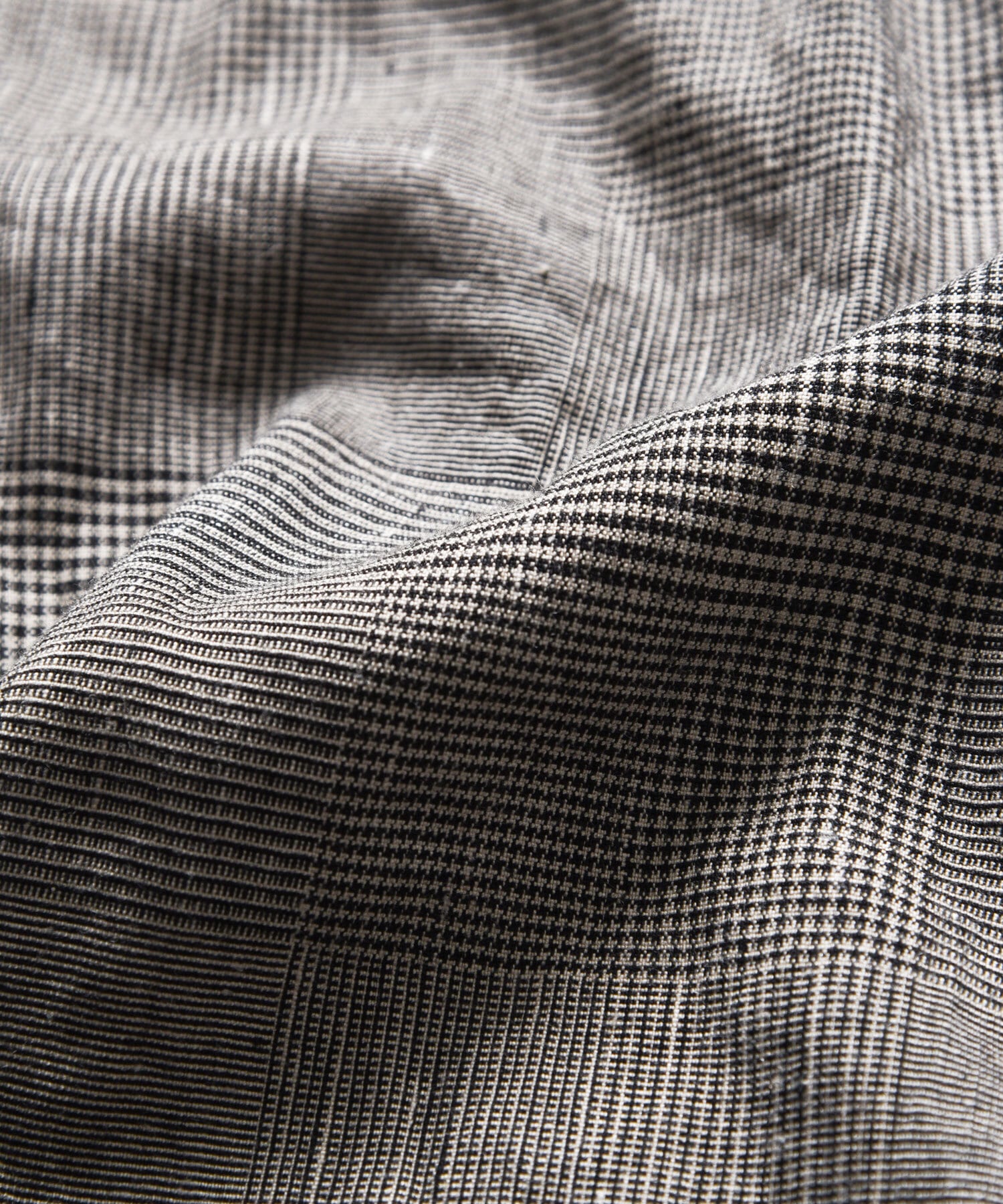 リネン混のネップ入り素材は、クラシックでありながらモダンな表面感を持ち、