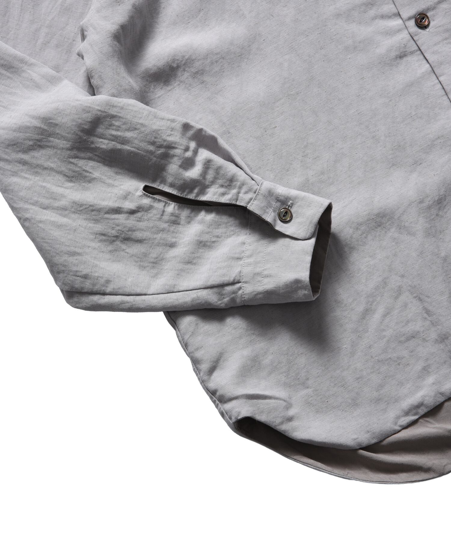 表面にはオフィサーシャツらしいクラシックなディテールを配し 、裏面にはヨーロッパのワークシャツ風のディテールを施しています。
