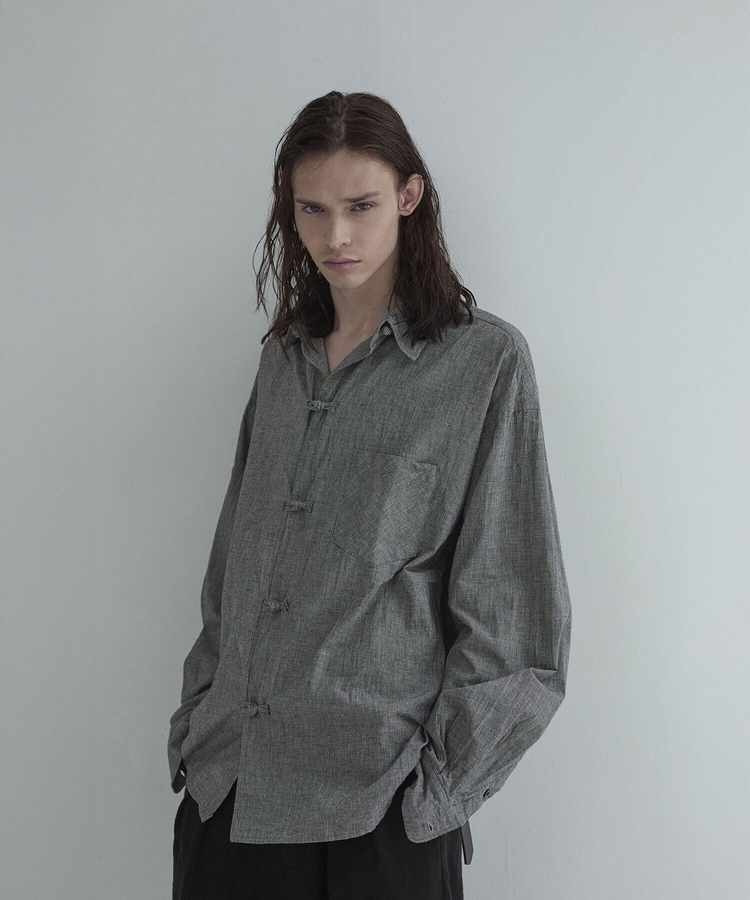 最大の特徴は、共生地で極限まで細く小さく仕立てたハンドメイドのチャイナボタンです。