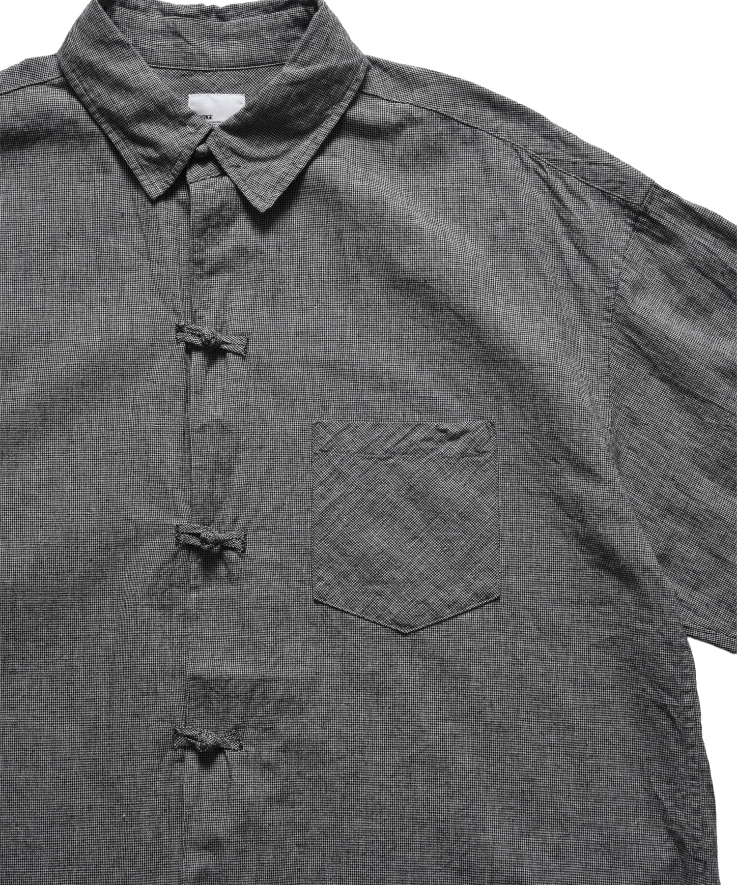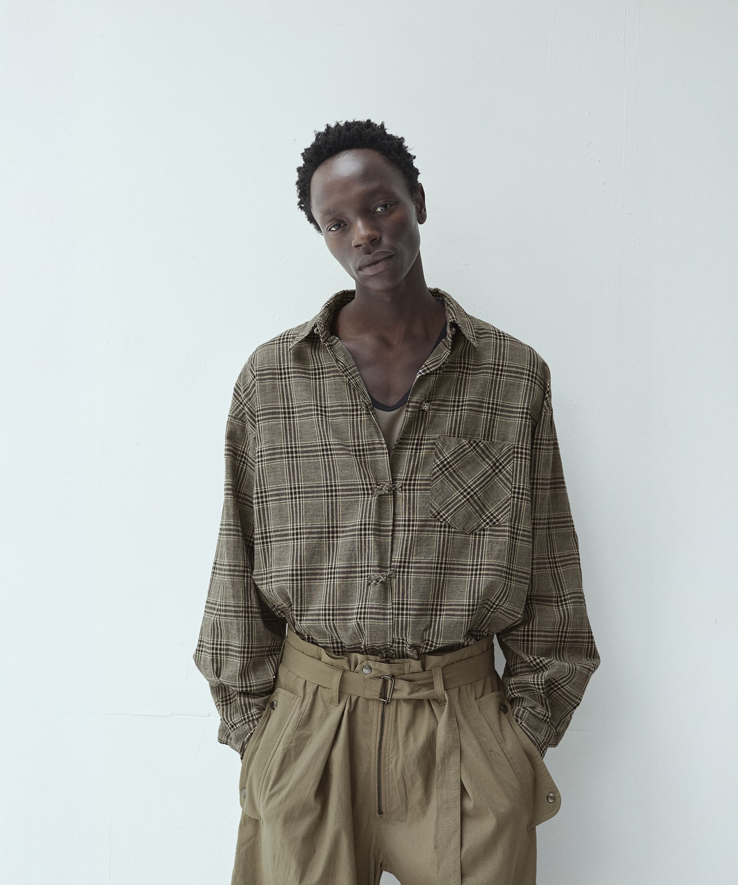 ノーカラーやスタンドカラーが多いミリタリーシャツの中でも、最もベーシックな形を採用することで、どんなスタイリングにも馴染みやすく仕上げました。