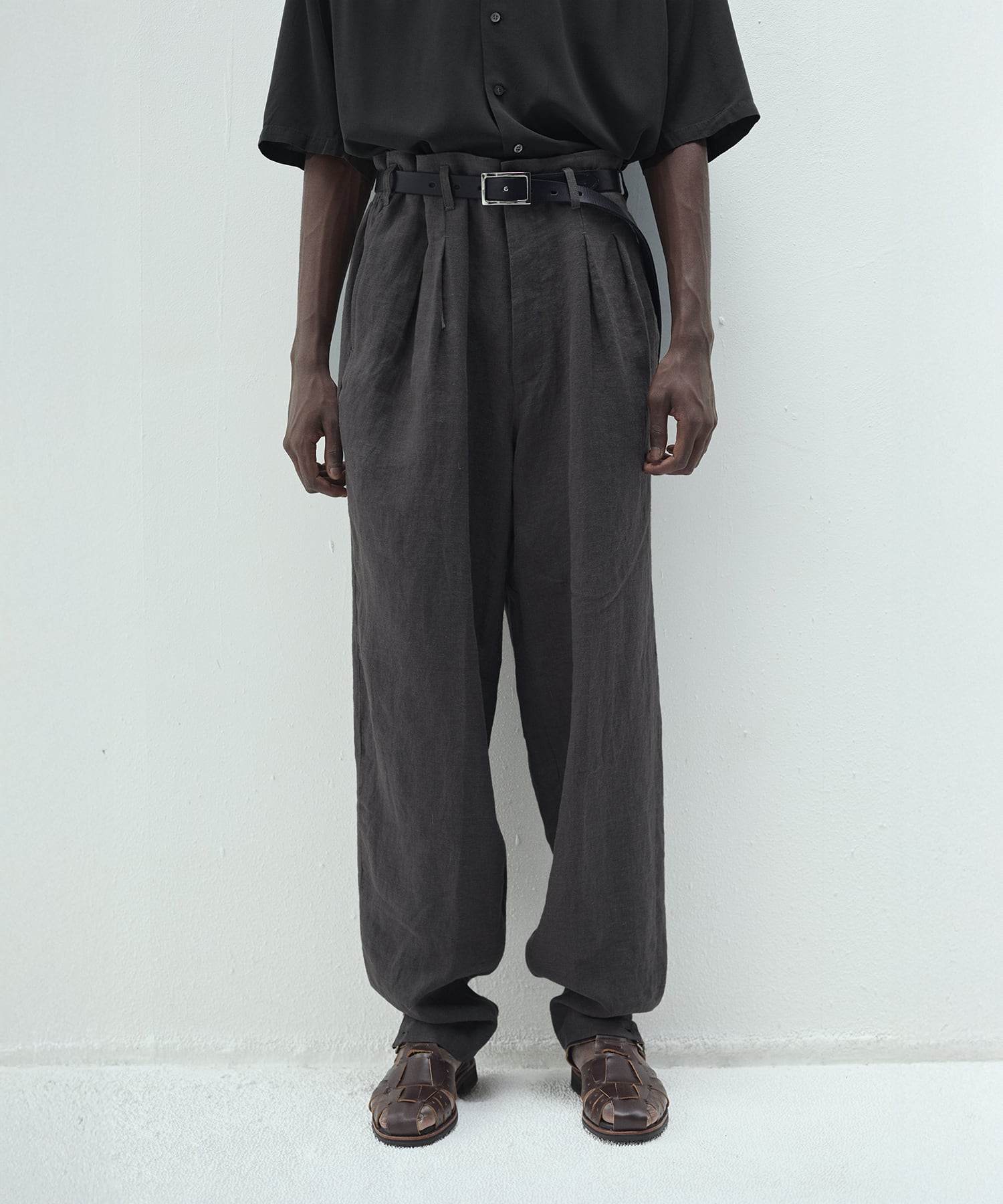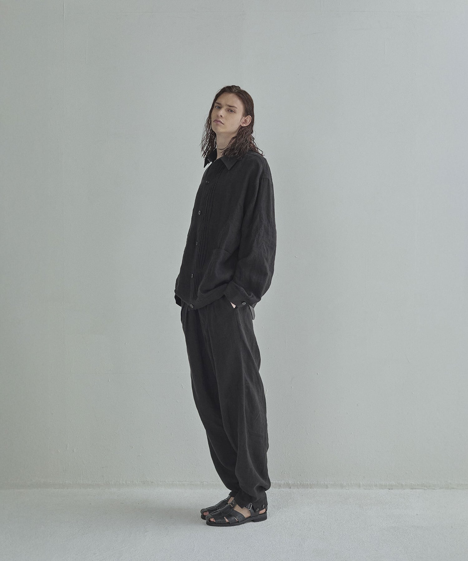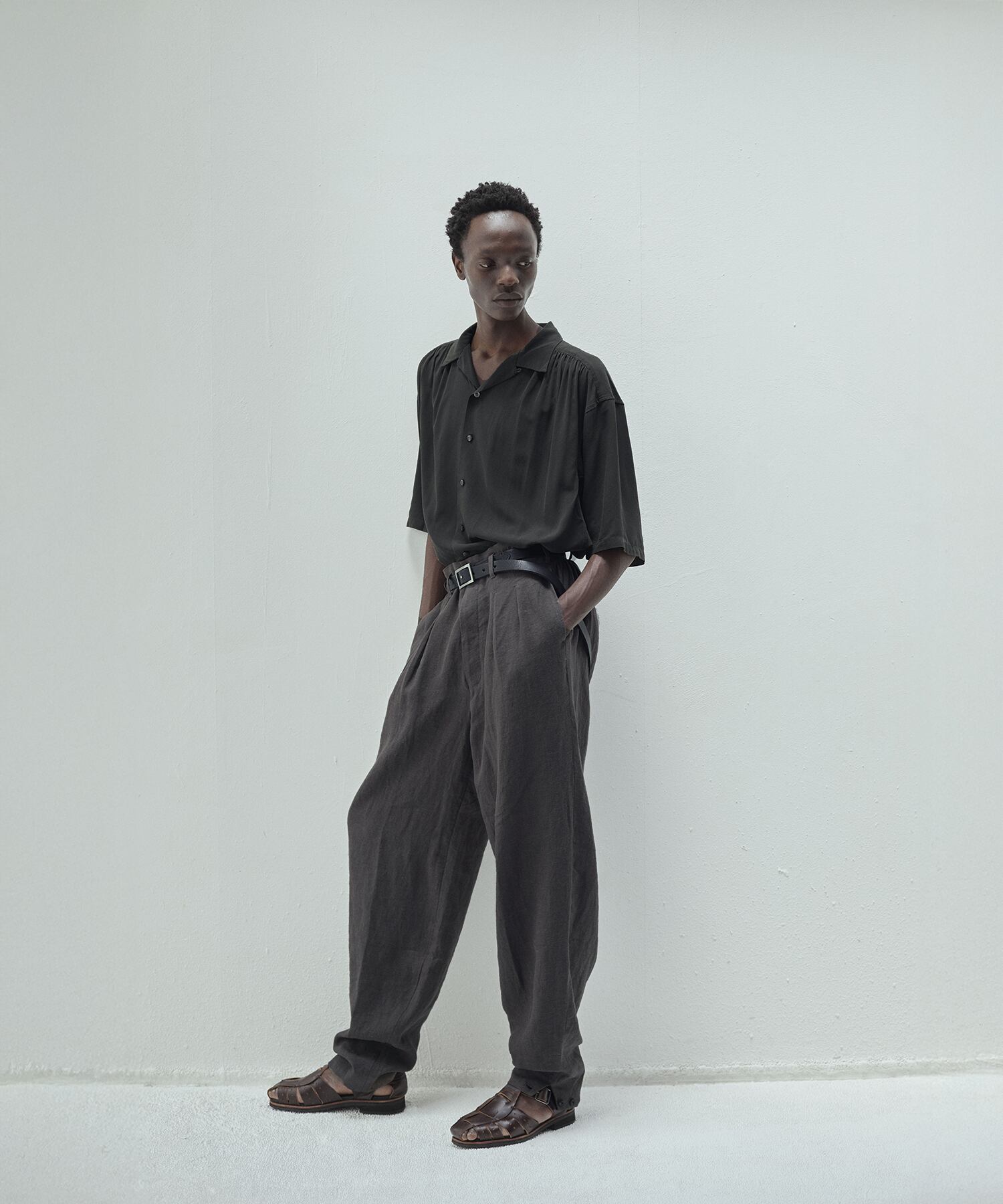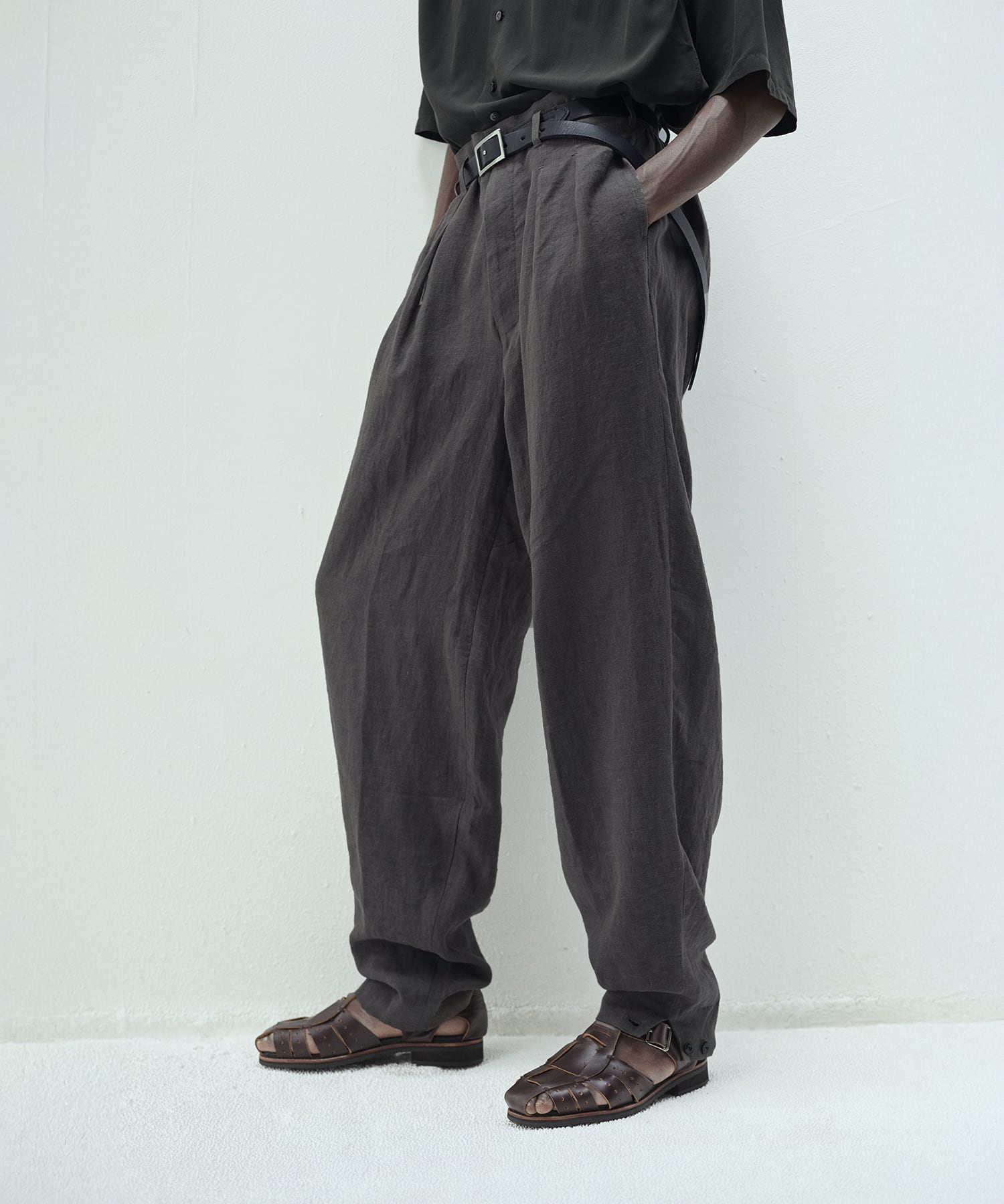さらに、リネン素材で履き込むほどにしなやかさが増し、味わい深い表情へと変化し、自分だけの一着へと育っていきます。
