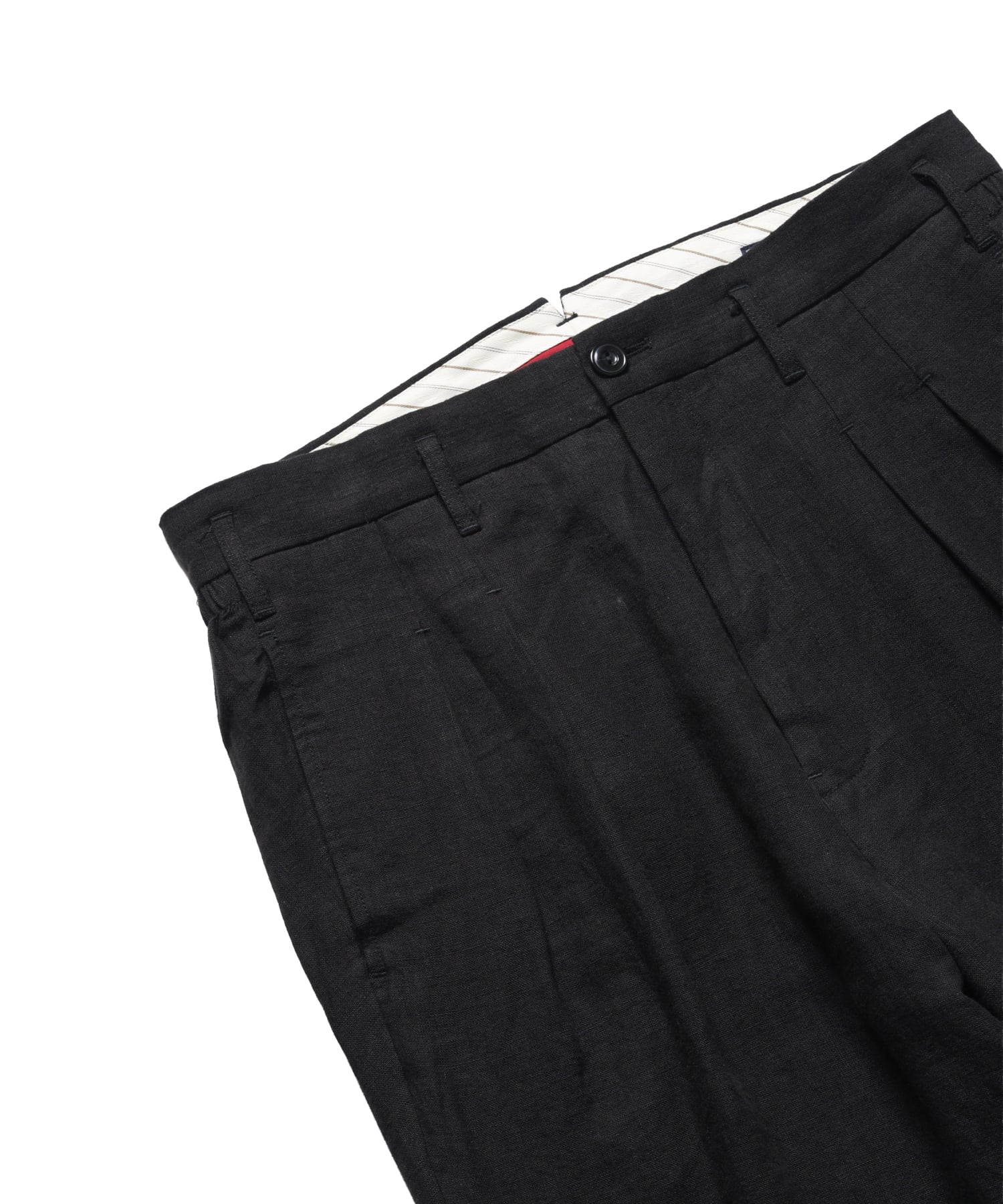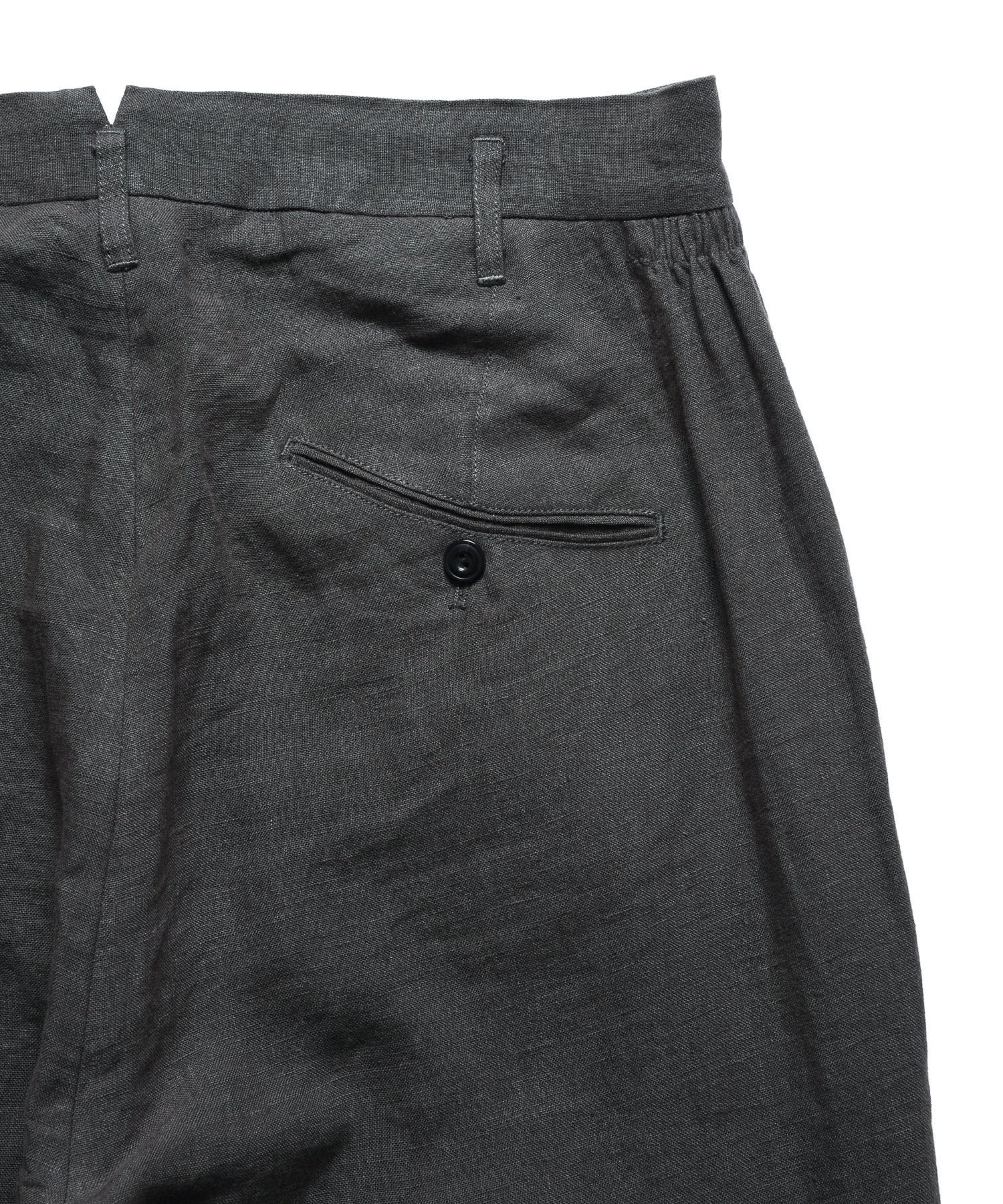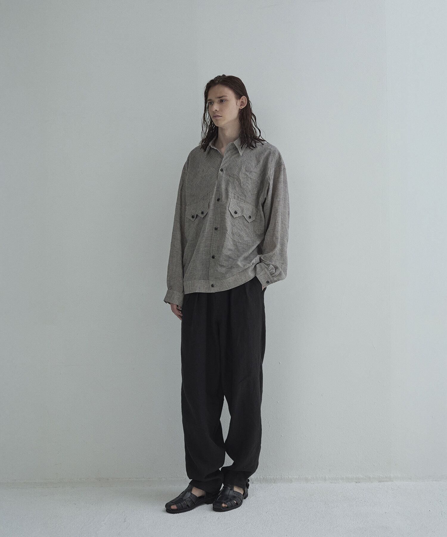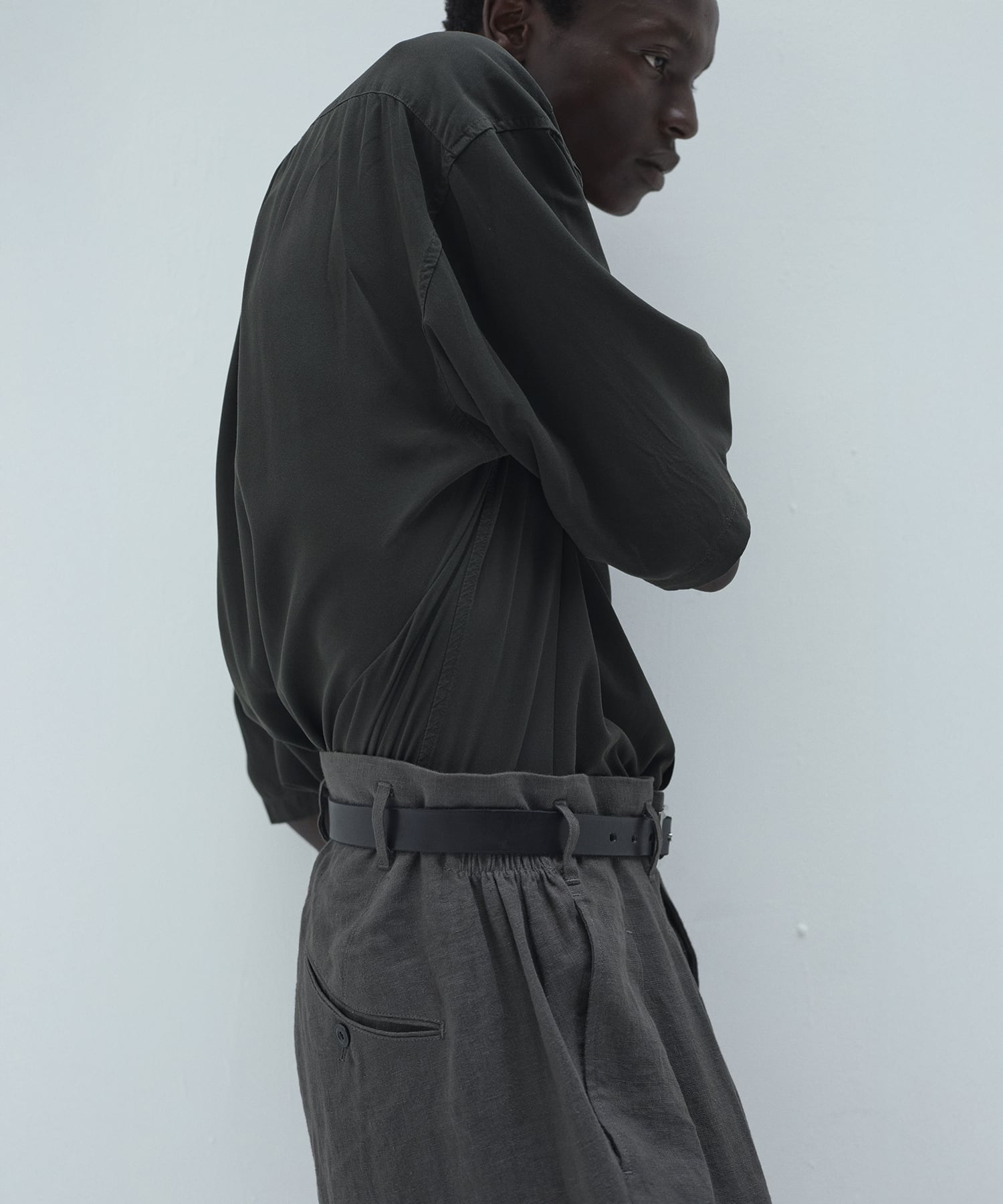 さらに、リネン素材で履き込むほどにしなやかさが増し、味わい深い表情へと変化し、自分だけの一着へと育っていきます。