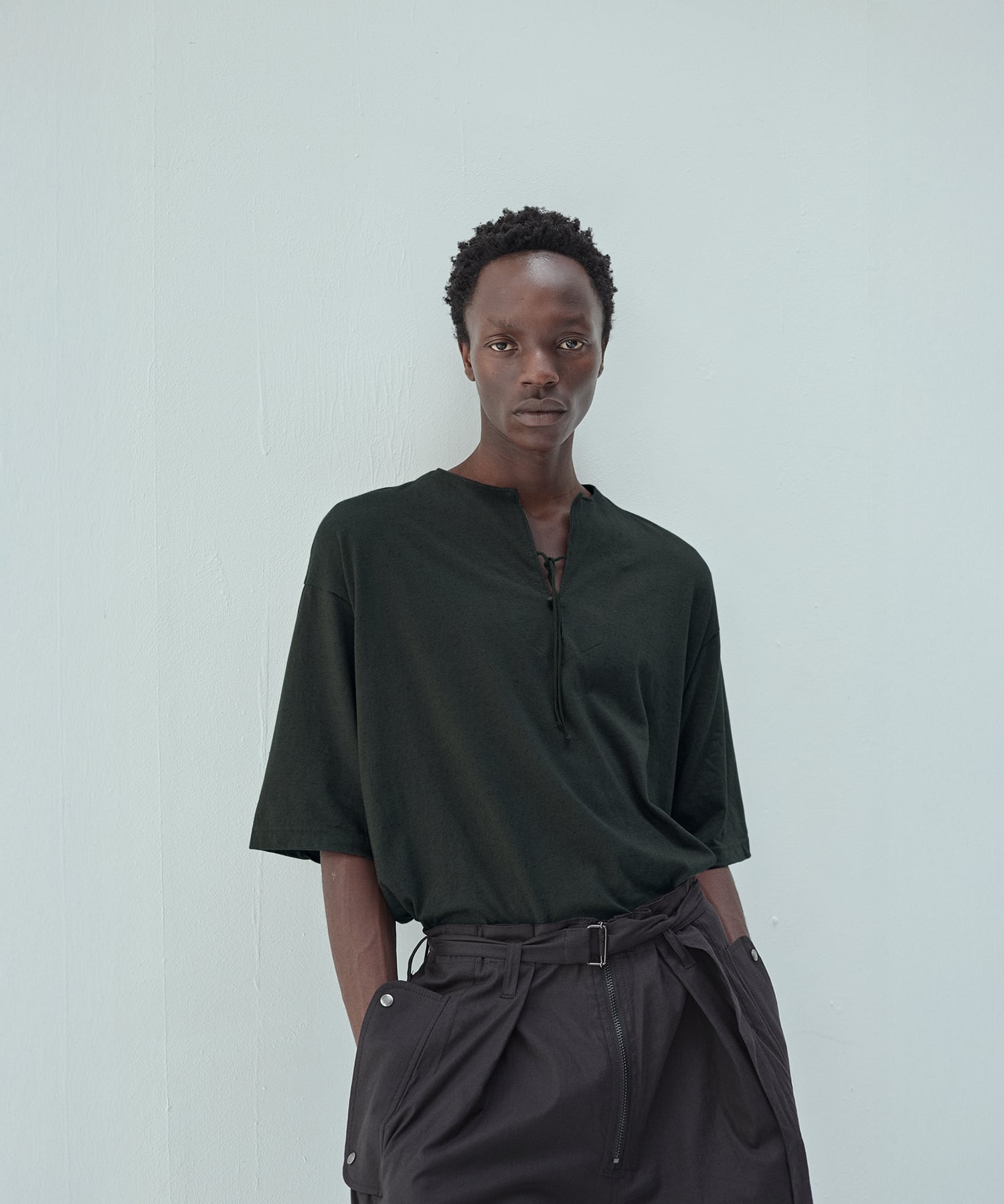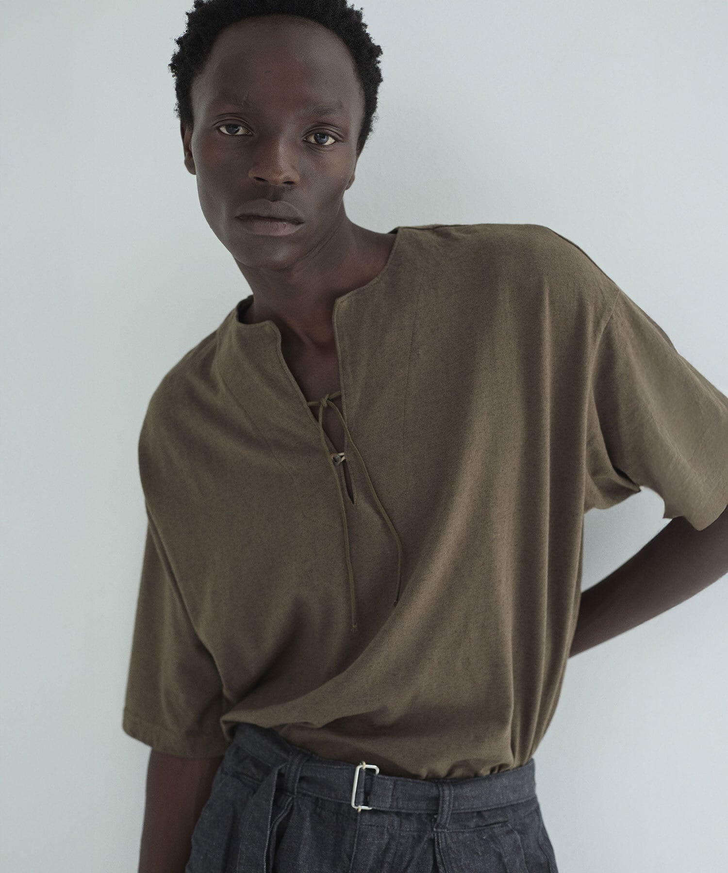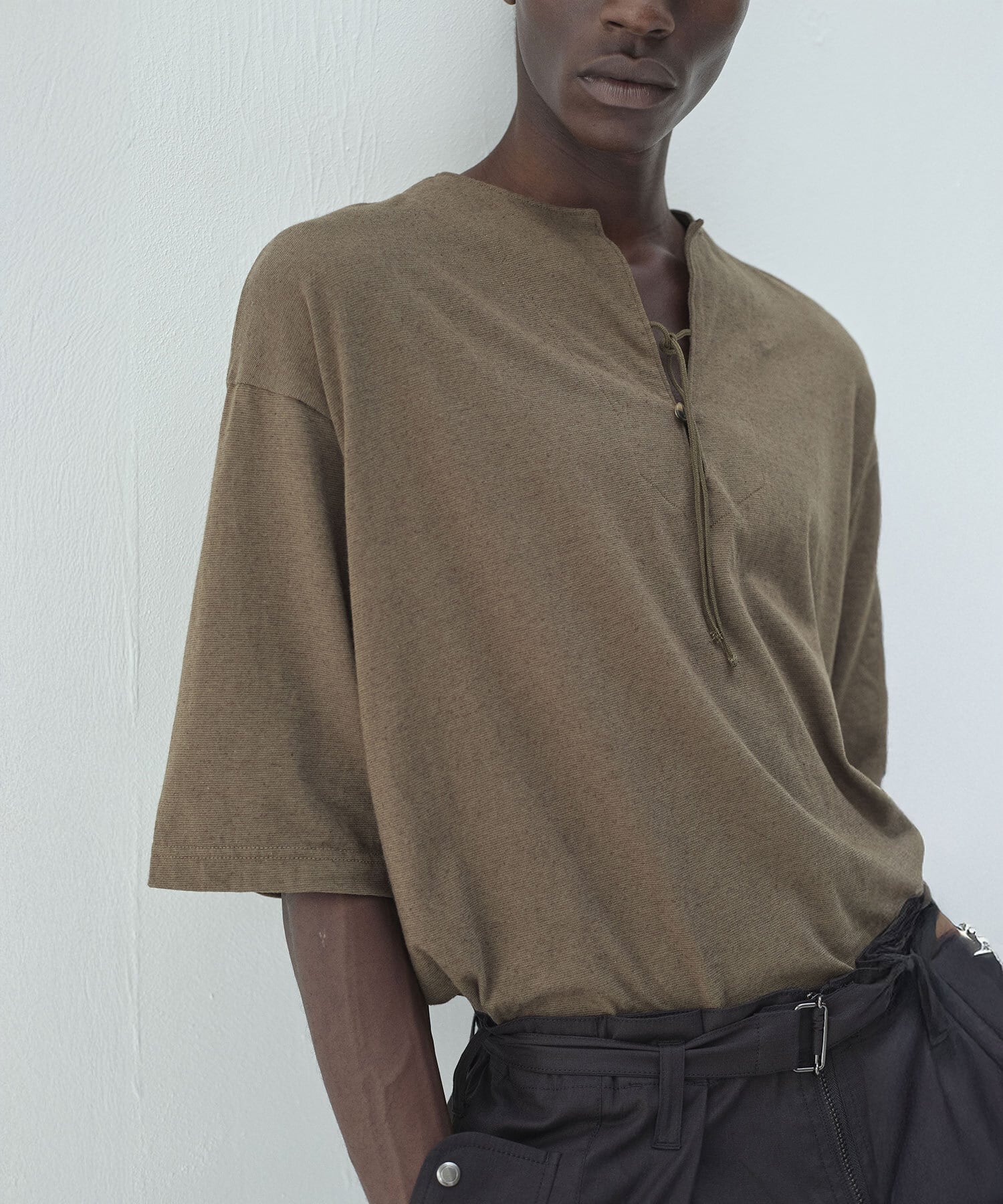 ヘンリーネックのボタン仕様により、開閉によって表情を変えられるのも魅力です。
