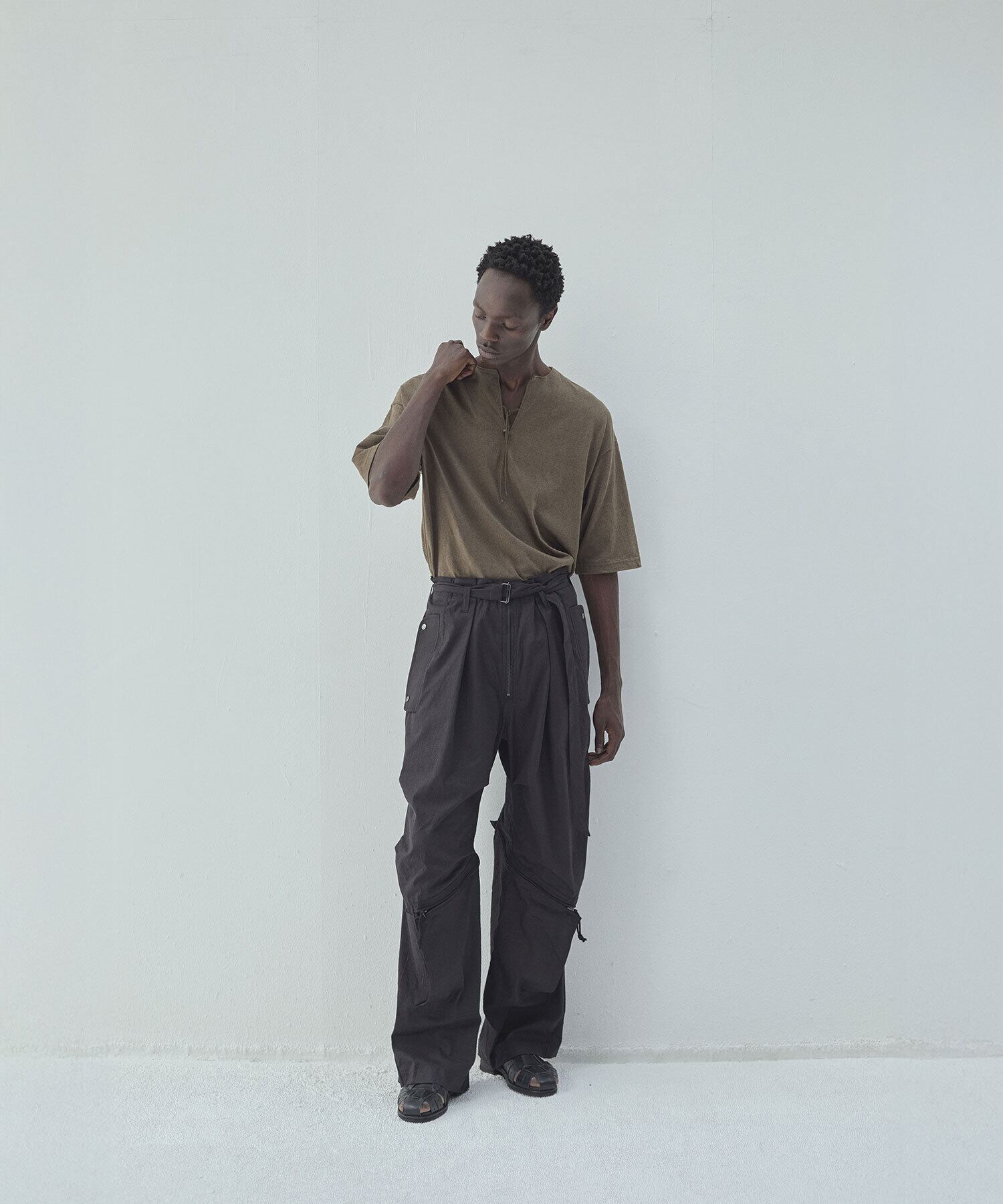 この素材の持つナチュラルな風合いと適度な落ち感が、シンプルながらも存在感のある仕上がりをもたらします。