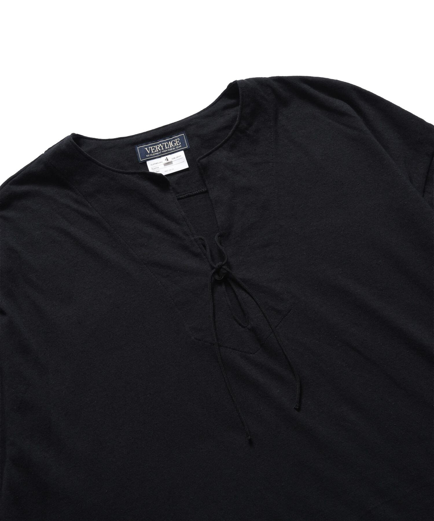 細めのコードとループによるボタンで止めるヘンリータイプを採用し、インナーとしても一枚着としても様になる汎用性のあるデザインに仕上げました。