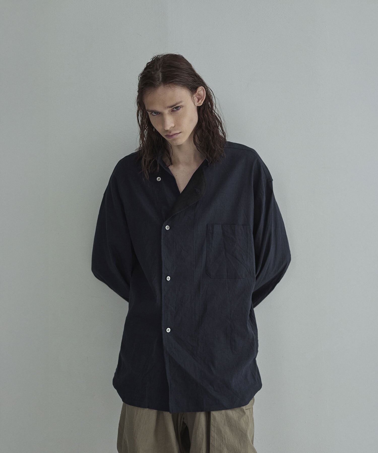「アシンメトリーデザインで表現する洗練されたスリーピングシャツ」というコンセプトから生まれた1着です。